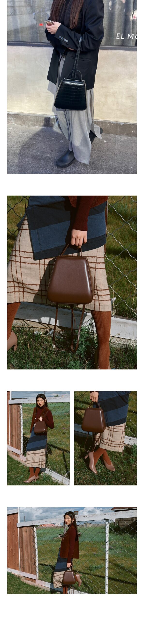 Strap Length: The strap of the bag is not adjustable. It was designed this way to maintain the classic shape of the bag. The total length of the strap is 85cm. When worn as a backpack, it rests above the hips, and it can also be worn as a shoulder bag on one shoulder.