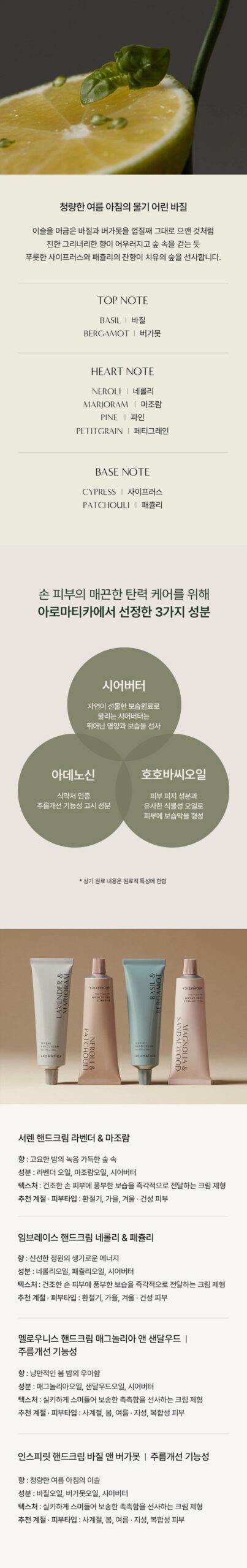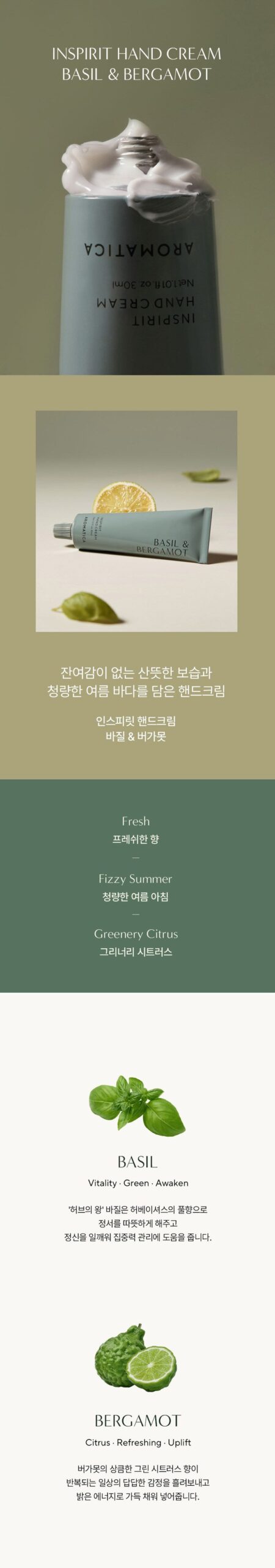 I love the AROMATICA Inspirit Hand Cream Basil & Bergamot! The green citrus scent is so refreshing, like a forest mood. It moisturizes my hands instantly without feeling sticky, and the velvety texture makes them feel so nourished.