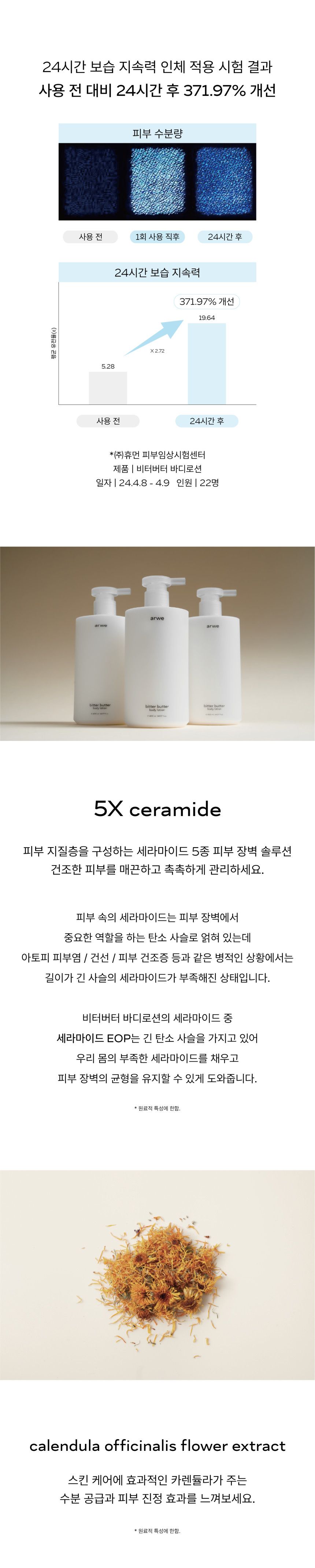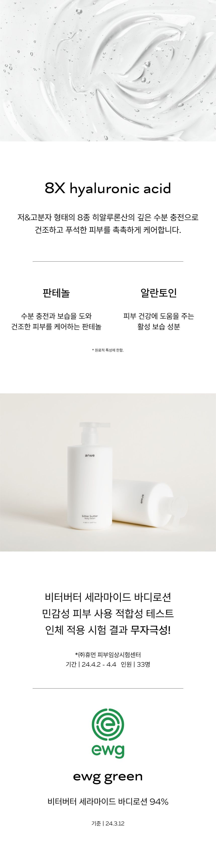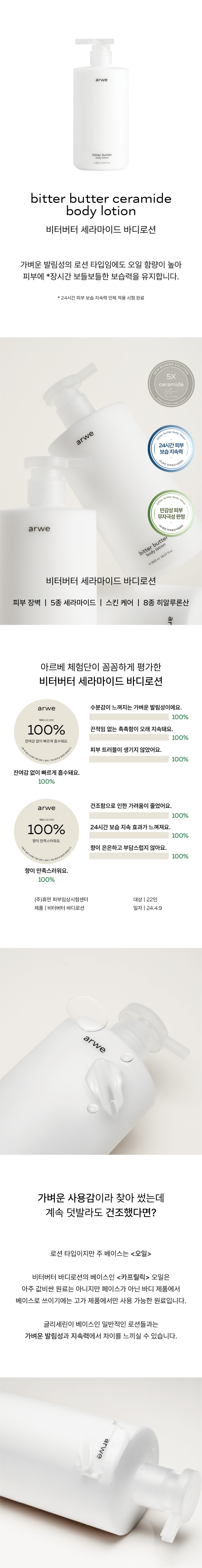 The ARWE Bitter Butter Ceramide Body Lotion has undergone rigorous human application tests and is certified as non-irritating, making it safe and gentle for all skin types, including sensitive skin.