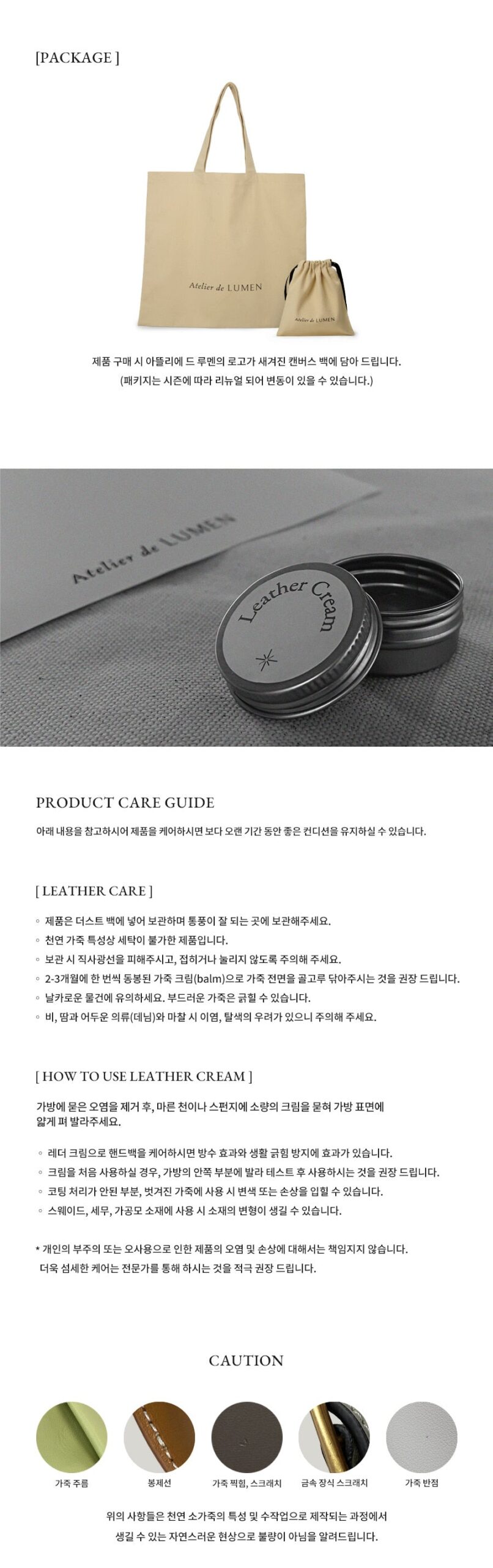 - Canvas Bag Packaging: When purchasing, the product is delivered in a canvas bag with Atelier LUMEN’s logo. Packaging may vary seasonally.