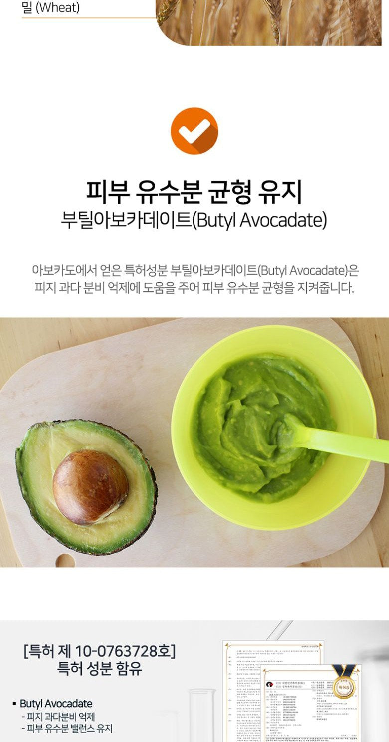 - Oil and Moisture Balance: Contains Butyl Avocadate (Patent 10-0763728) to suppress excessive sebum secretion, balance skin oil and moisture, remove sebum and dead skin cells, and maintain skin texture.