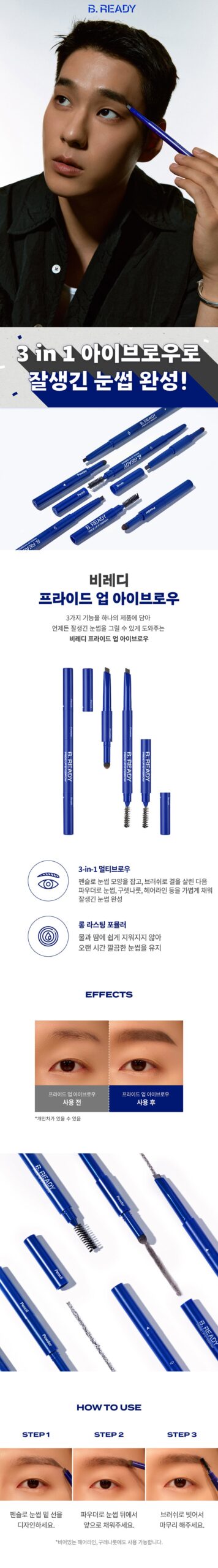 Achieve perfectly groomed eyebrows effortlessly with the B.READY Pride Up Eyebrow. This 3-in-1 multi-functional eyebrow product combines convenience and style, helping you create well-defined and natural-looking brows anytime, anywhere.