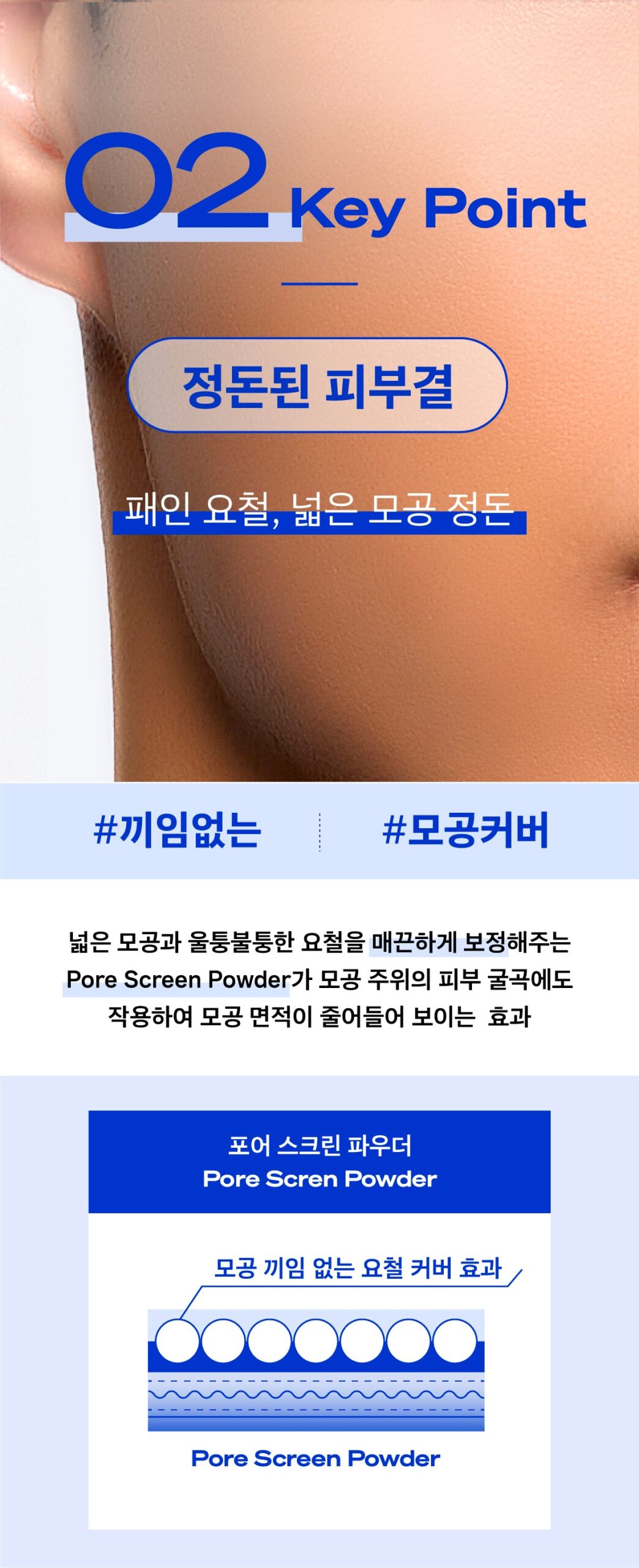- Pore Screen Technology: Smooths uneven texture, reduces the appearance of large pores, and provides a flawless finish.