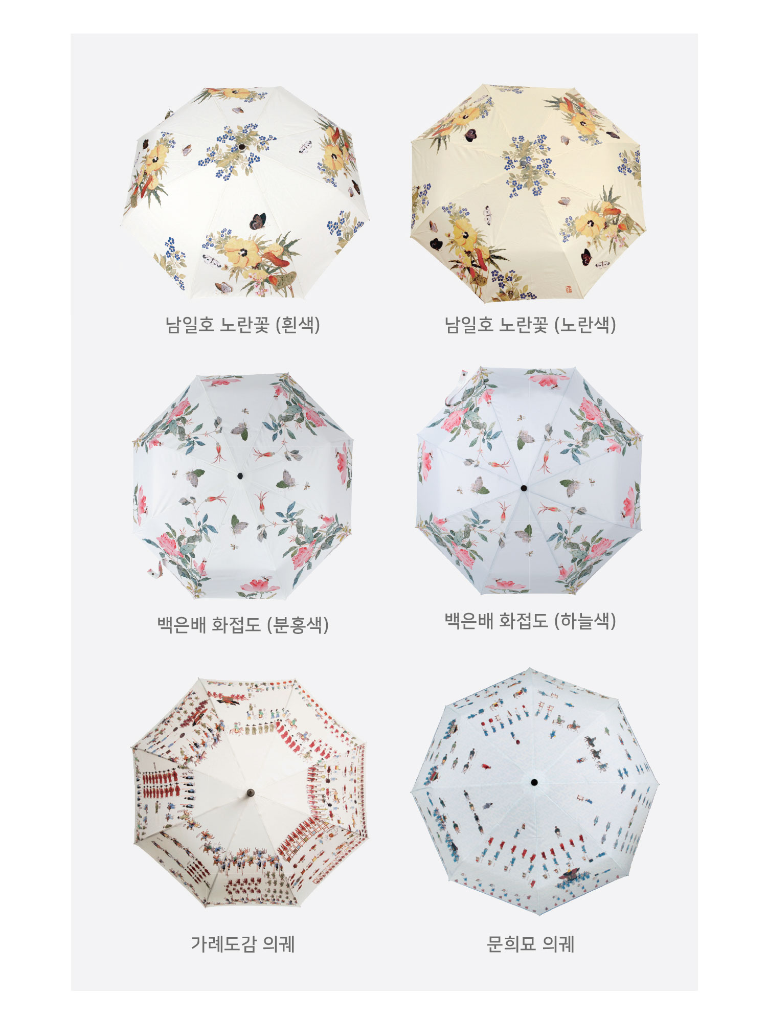 This elegant 3-stage automatic umbrella features the beautiful Hwajeopdo (Flower and Butterfly) painting by renowned Joseon Dynasty artist Baek Eunbae. A treasured piece from the National Museum of Korea collection.