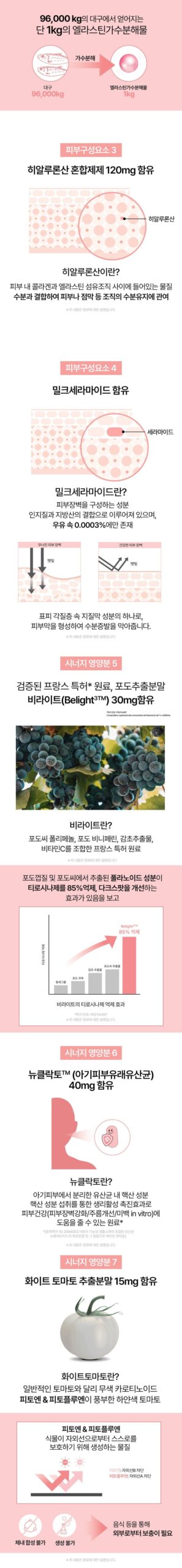 NuClacto™ (40mg): Derived from baby skin probiotics, this ingredient promotes skin health by enhancing the skin barrier and improving wrinkles and whitening.