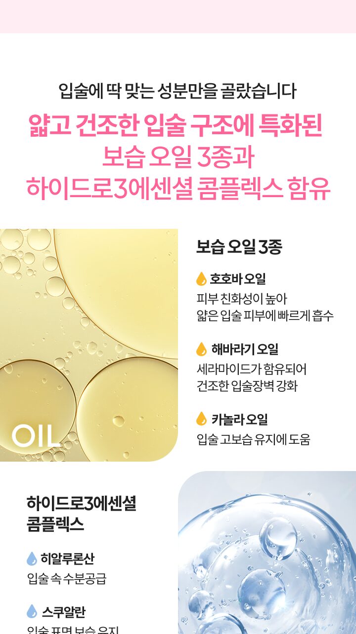 - Jojoba Oil: Fast-absorbing, skin-friendly oil that deeply hydrates the thin skin on your lips.