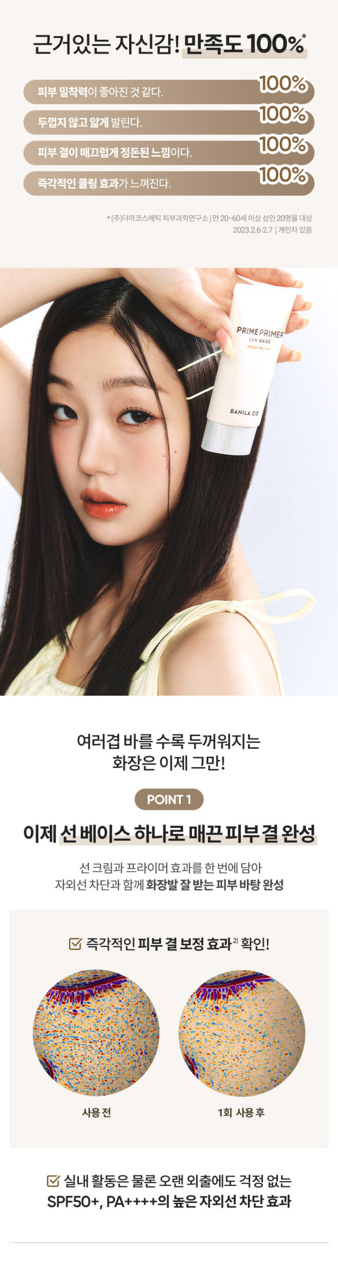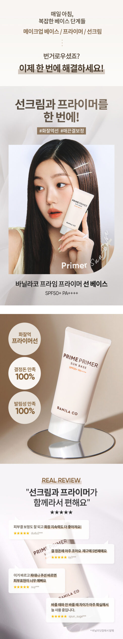 I have been using the BANILA CO Prime Primer Sun Base SPF50+ PA++++ for a few weeks now, and I am truly impressed. The dual function as both a primer and sunscreen is brilliant; it provides great UV protection while also smoothing my skin texture beautifully. Its lightweight consistency absorbs quickly without leaving any greasy residue, which is essential for me during hot days. I’ve noticed that my makeup stays in place longer, looking fresh even after hours of wear. Plus, the immediate cooling effect feels refreshing on application.
