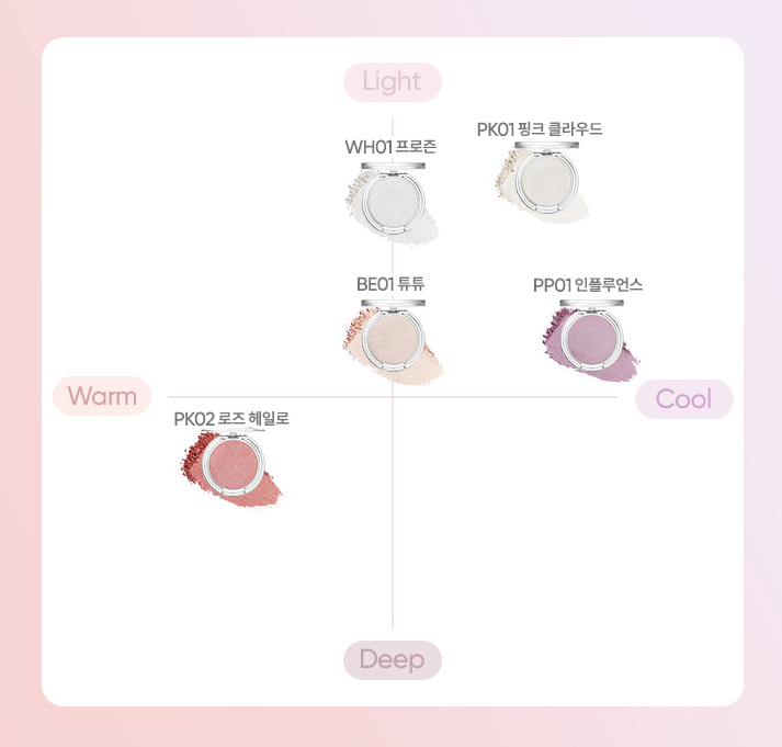 | PK02 Rose Halo | A deeper, warm rose shade for a golden-pink, radiant finish. (Deep Warm) | |