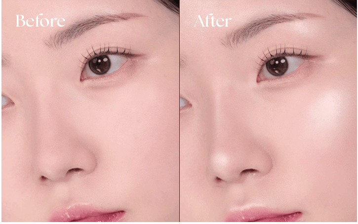 See the magic unfold! Our Silky Glow Highlighter instantly transforms your complexion, adding a luminous dimension that enhances your natural features. Observe how dullness is replaced with a radiant glow on the cheekbones, nose bridge, and cupid’s bow, creating a sculpted and refreshed appearance. Achieve that coveted healthy, lit-from-within look with just a few sweeps, revealing a more vibrant and defined you.