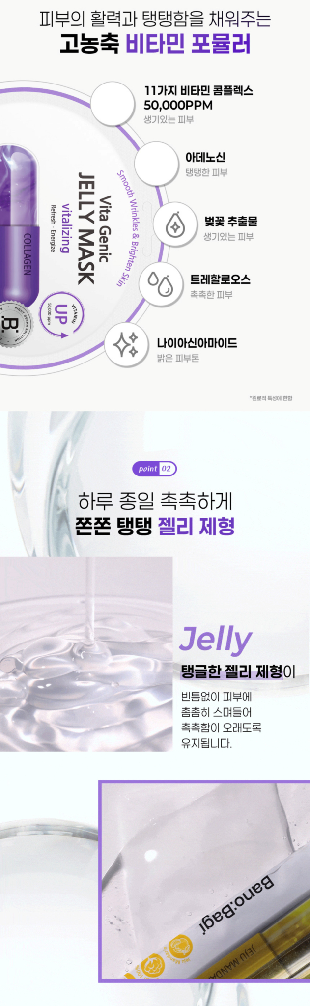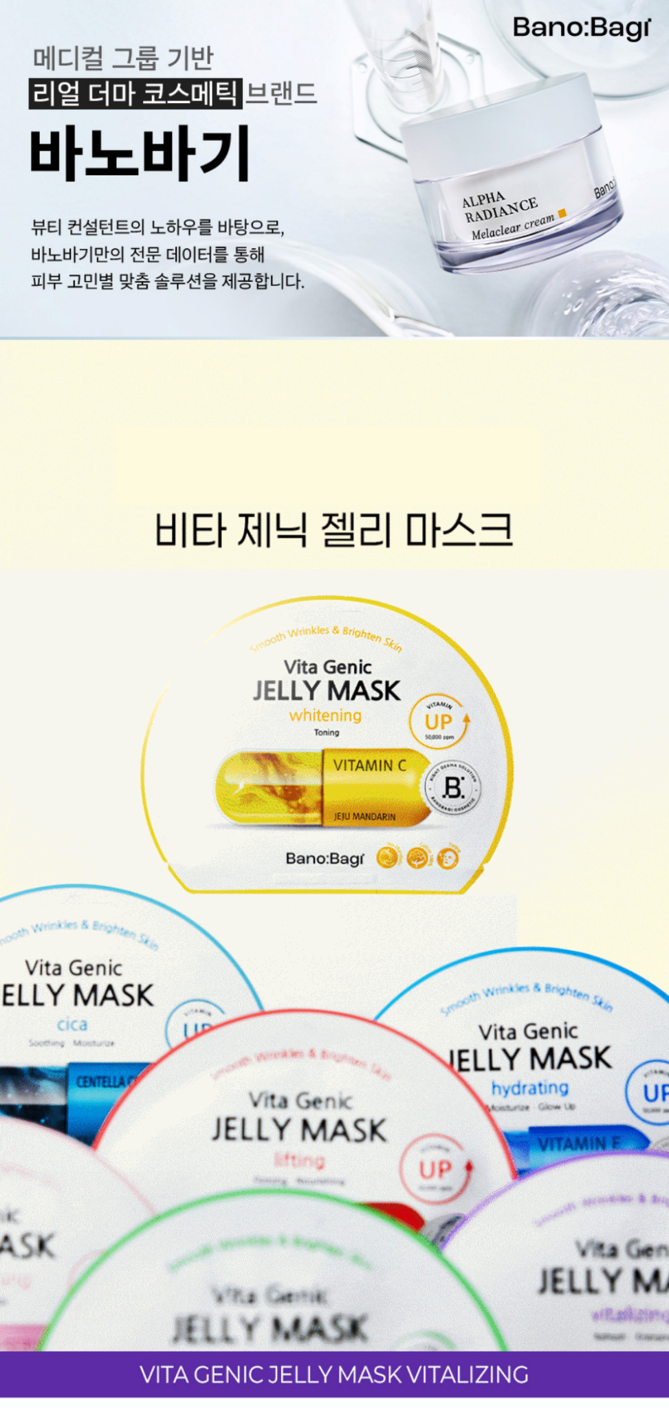 Refresh and energize tired skin with BANOBAGI Vita Genic Jelly Mask Vitalizing. This unique jelly-textured mask delivers 50,000ppm vitamin concentration along with collagen and Jeju cherry blossom extract to revitalize dull, fatigued skin.