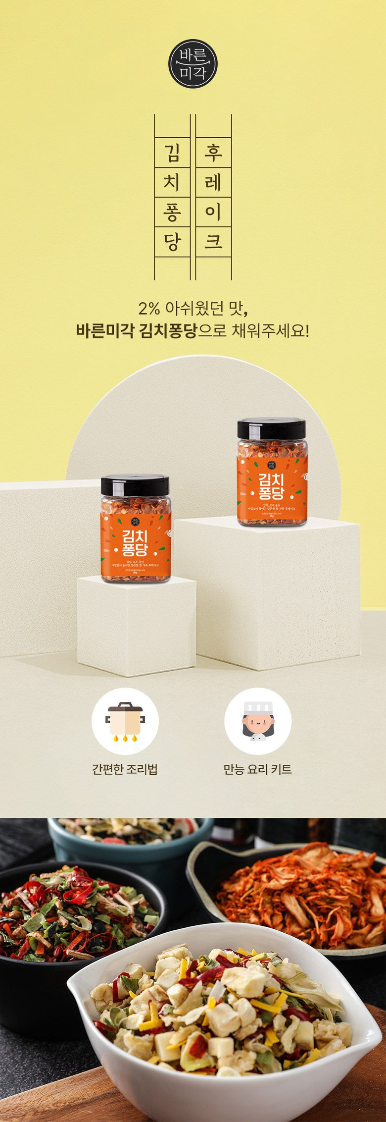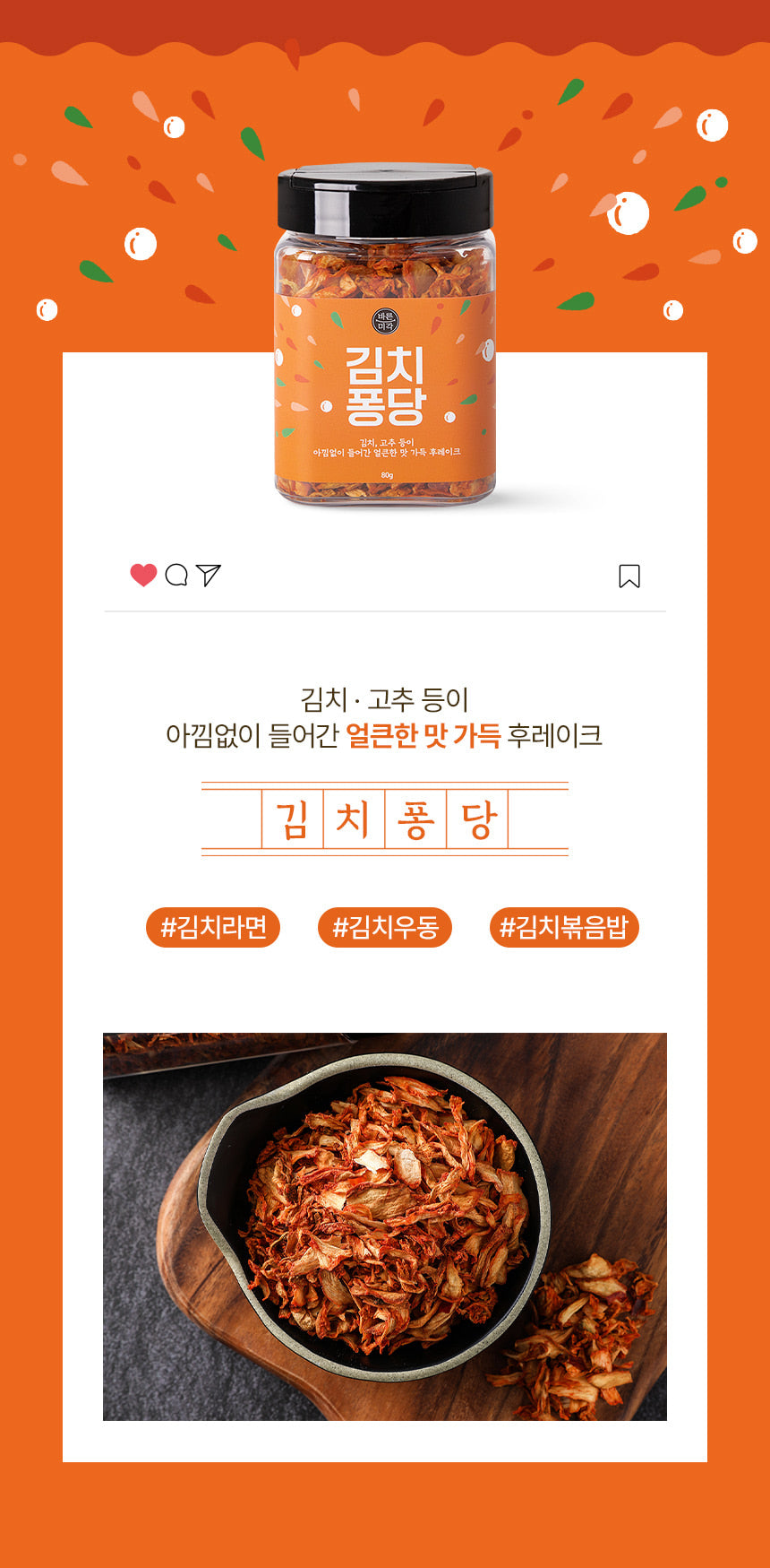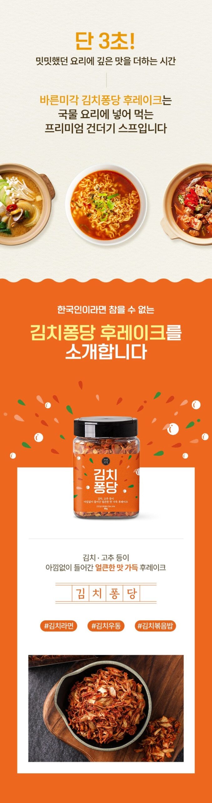 Barunmigak Kimchi Pongdang is a premium seasoning flake designed to instantly enhance the flavor of your dishes. With its rich, spicy taste packed with real kimchi and red pepper, it transforms bland meals into irresistible creations.