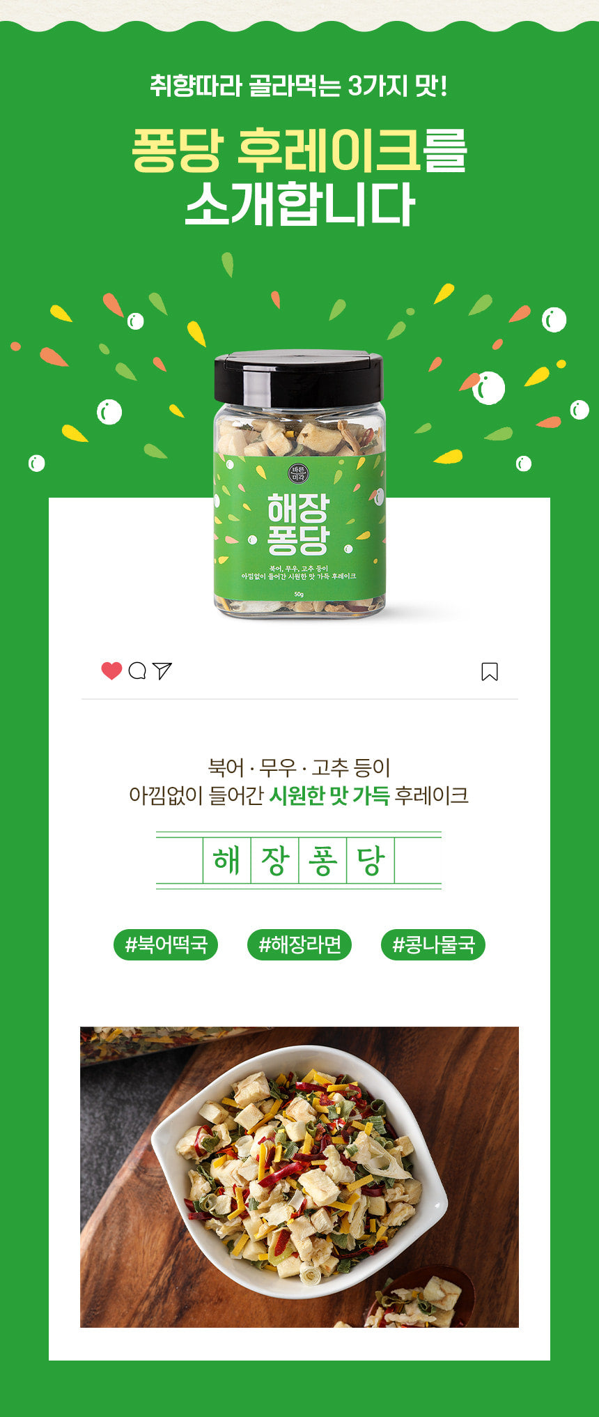 Add Kimchi Pongdang flakes to your favorite instant noodles for a refreshing and flavorful hangover cure.