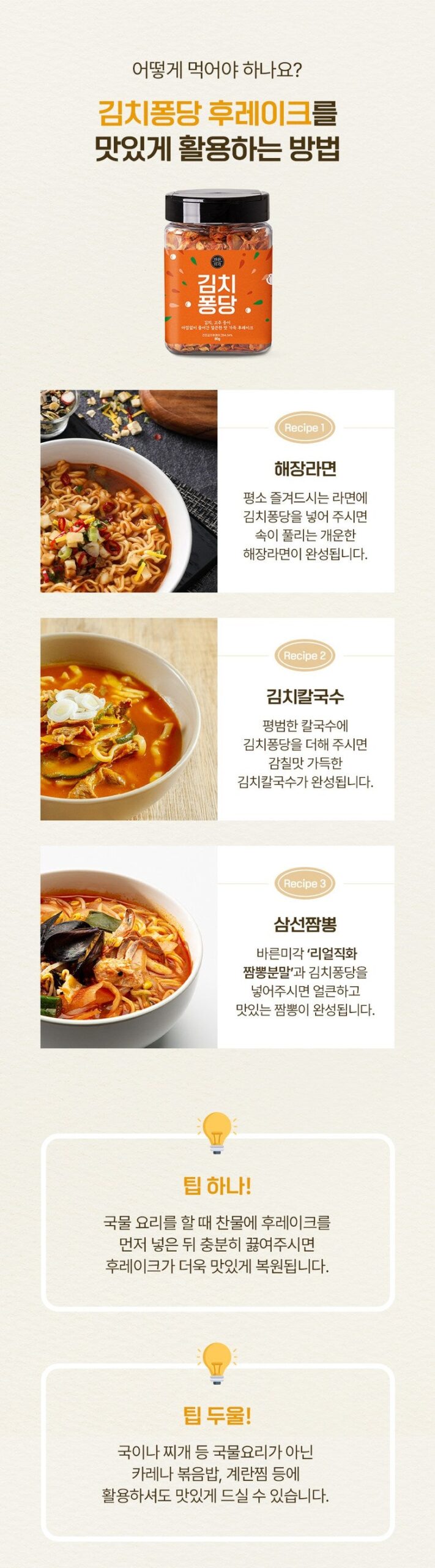 Add Kimchi Pongdang flakes to your favorite instant noodles for a refreshing and flavorful hangover cure.