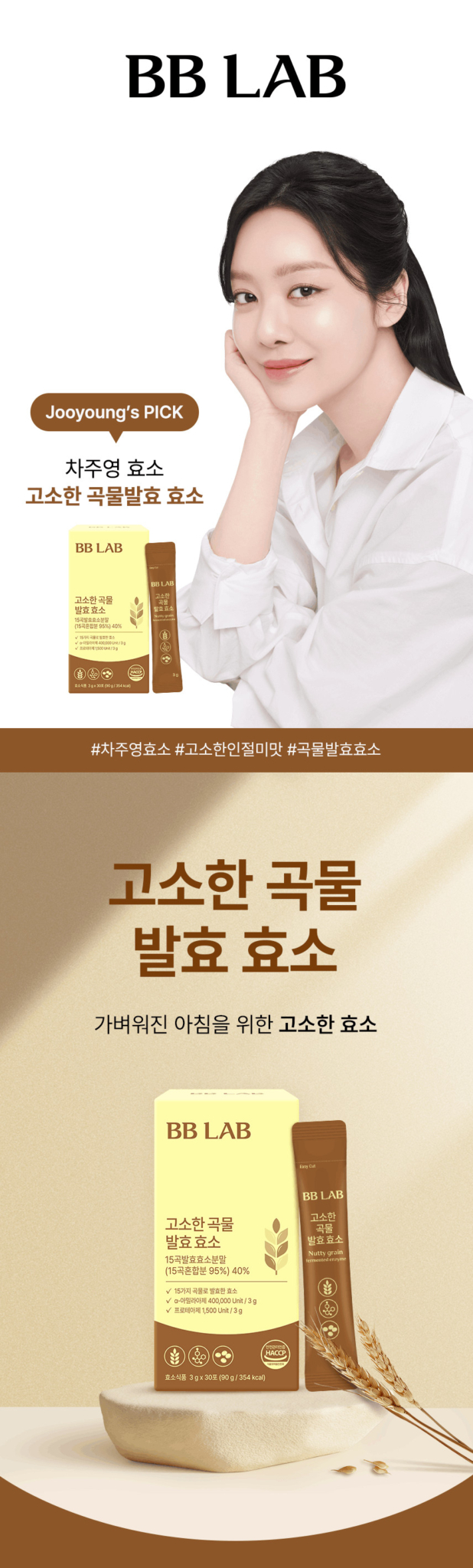 BB LAB Nutty Grain Fermented Enzyme features 15 types of fermented grain enzymes in convenient stick packets. This HACCP-certified supplement supports digestive health with alpha-amylase and protease enzymes for better nutrient absorption.