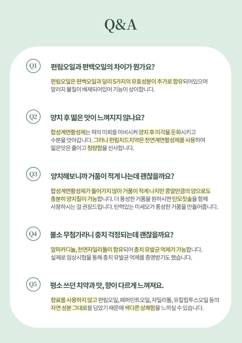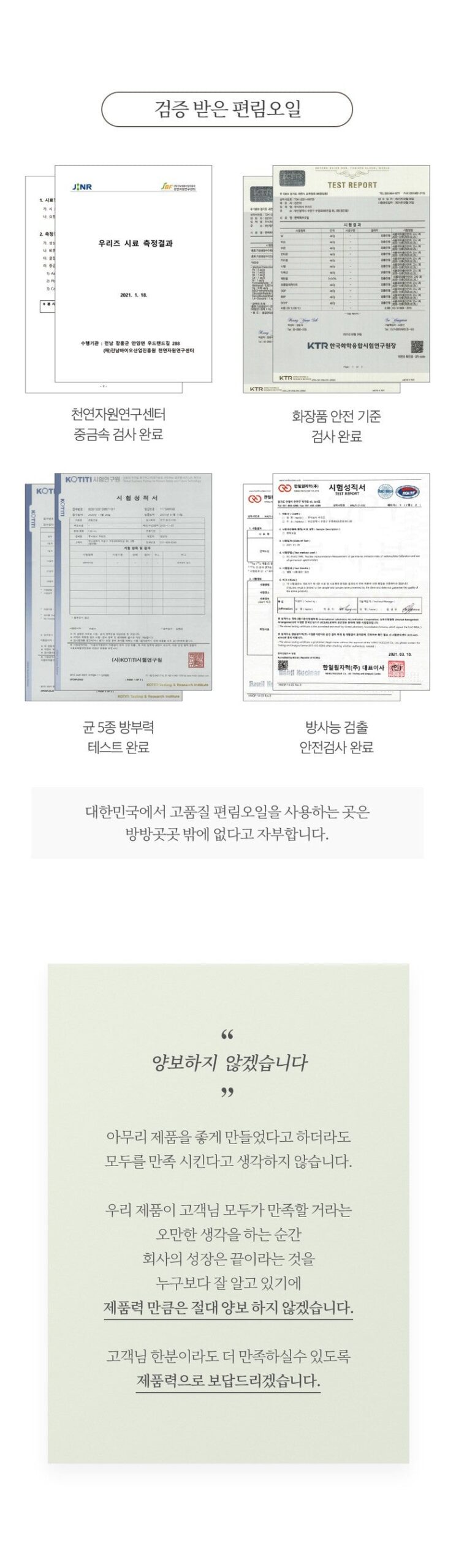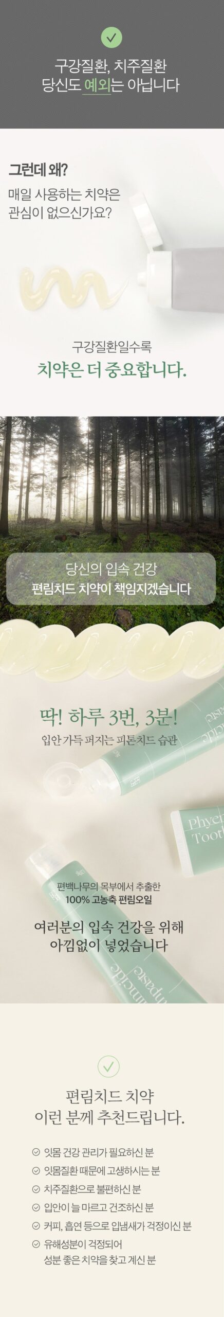 Additional Effective Ingredients: Phyenlim oil, unlike cypress oil, contains 5 additional effective ingredients and excludes allergens. It contains alphacardinol and natural xylitol, proven to suppress caries-causing bacteria through clinical trials.
