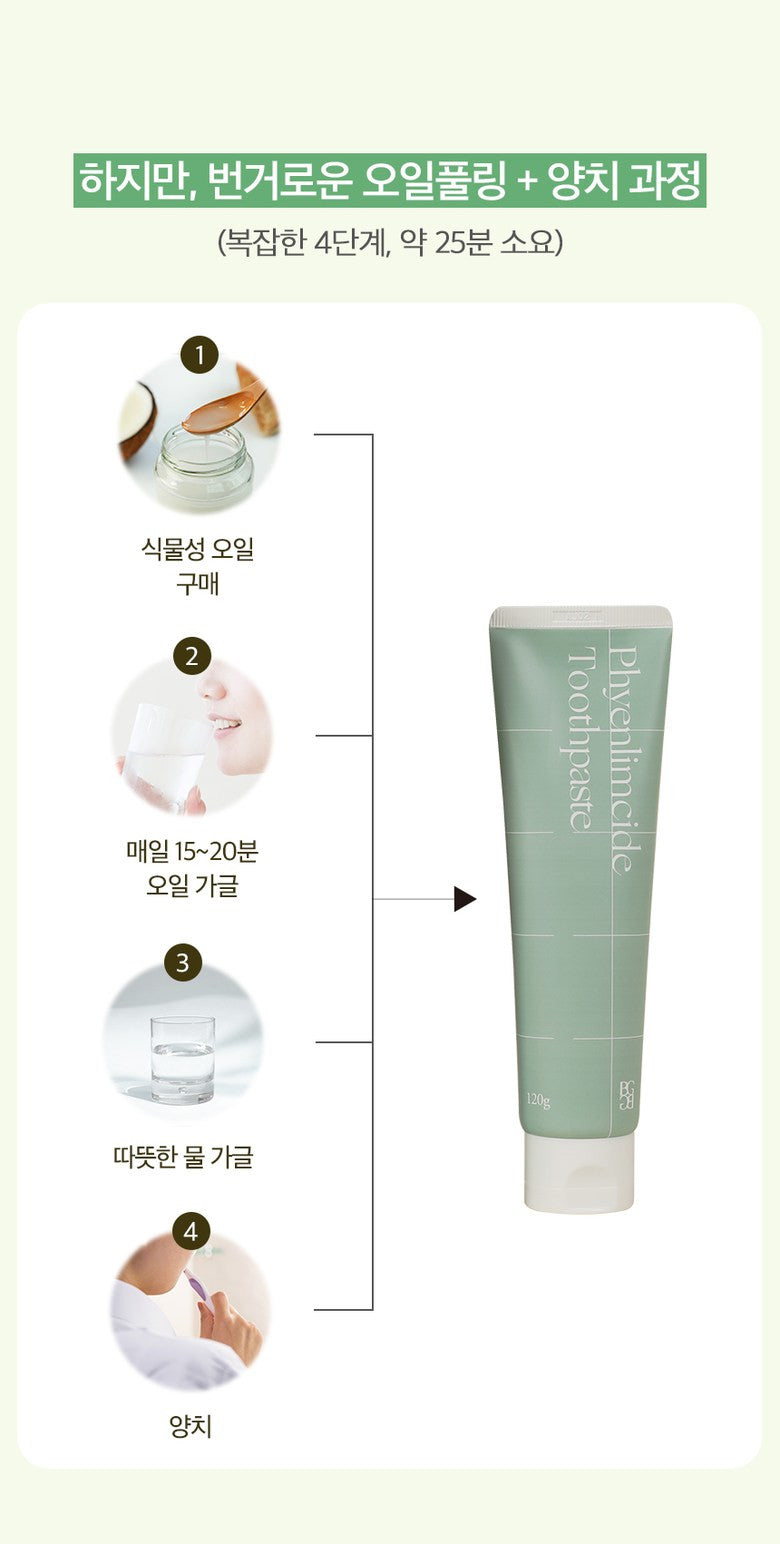 The hassle of oil pulling + brushing, Phyenlimcide reduces the hassle and increases the effect!