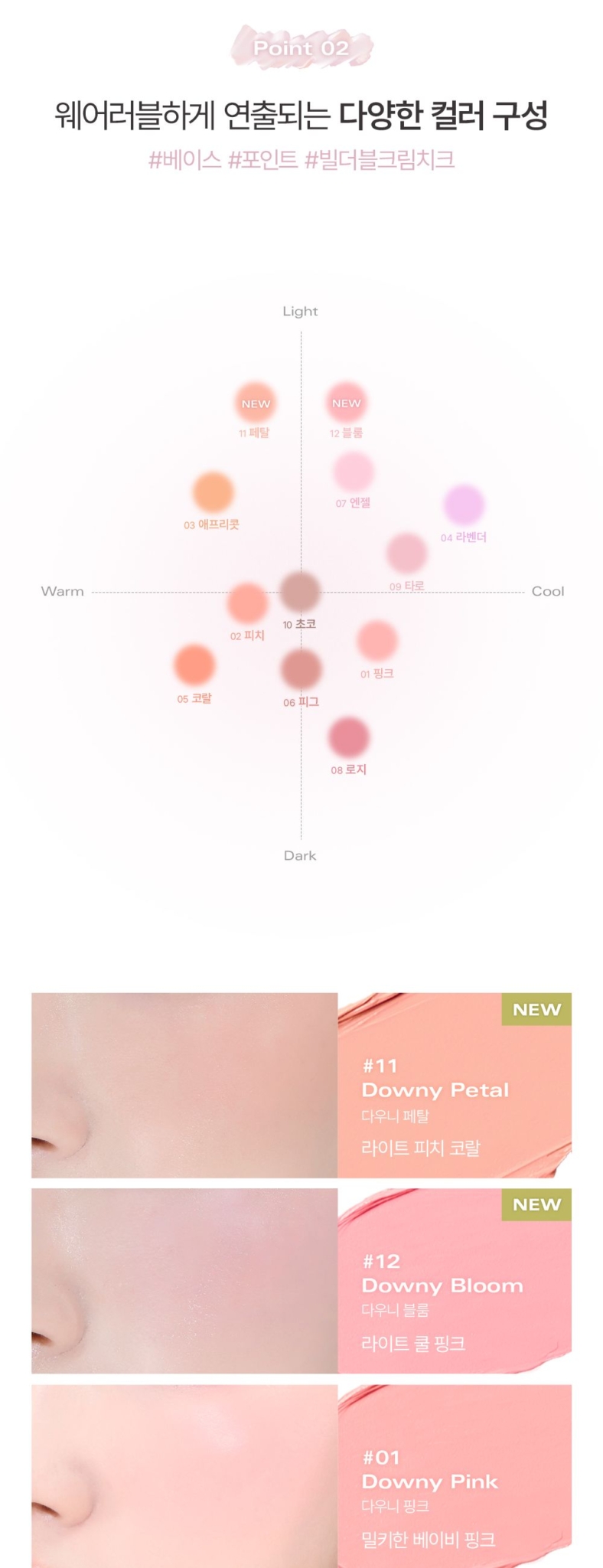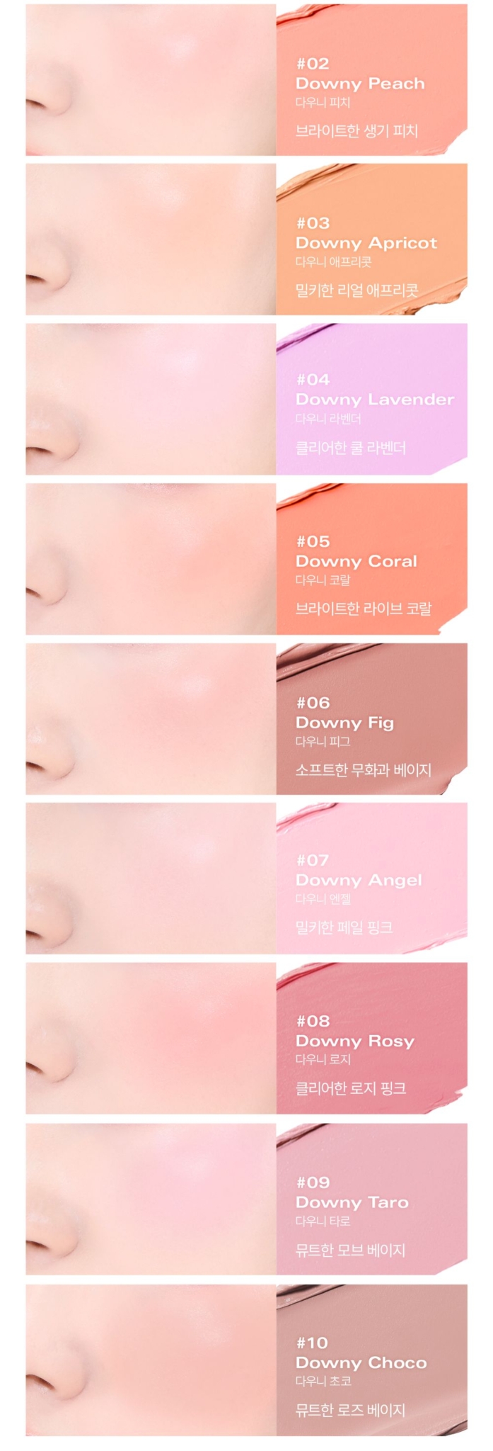 - Handmade Heart-Shaped Variants: The special heart-shaped versions of this blush are handcrafted. Limited quantities are available in shades 07 Downy Angel and 08 Downy Rosie. Once sold out, regular-shaped blushes will be shipped without prior notice.