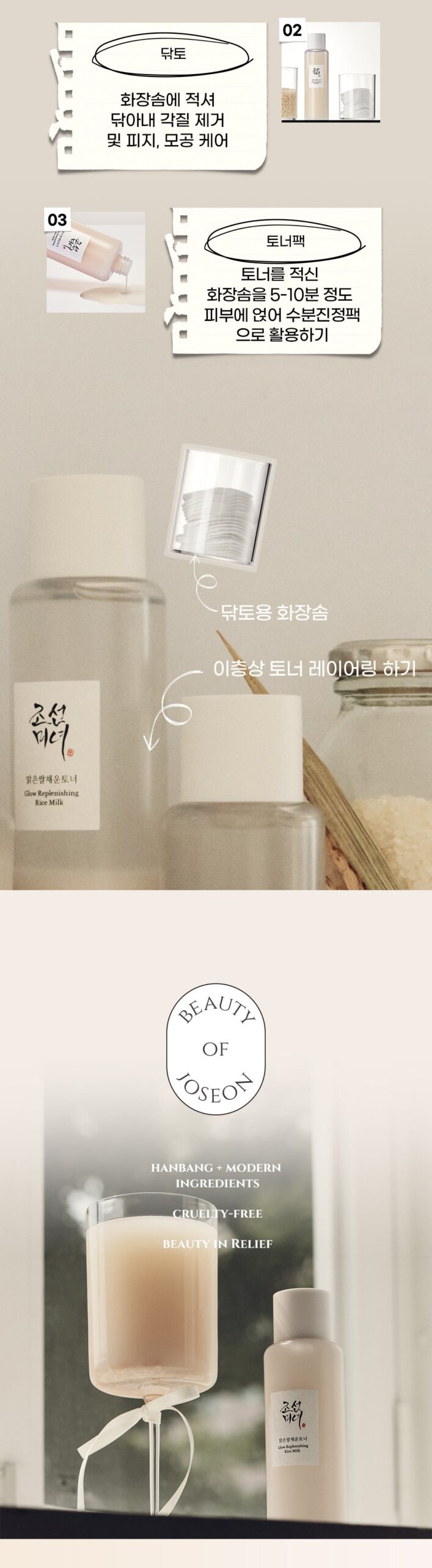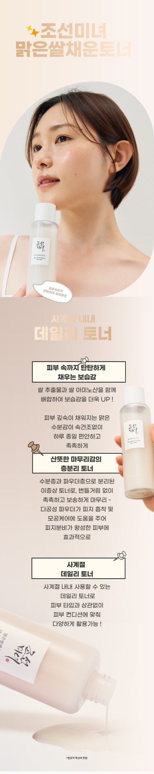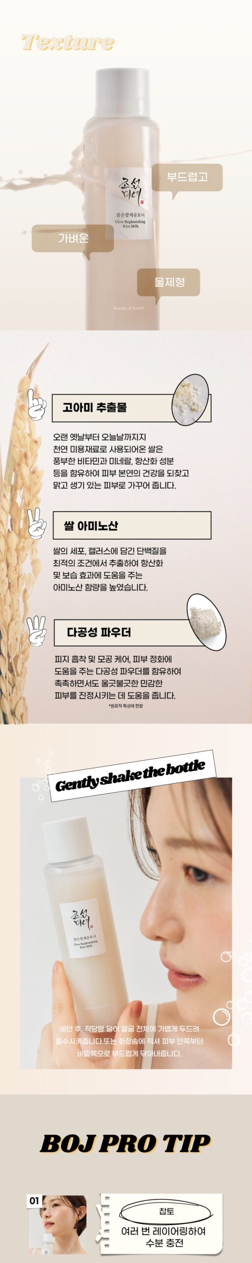 The Beauty of Joseon Glow Replenishing Rice Milk brings a modern twist to a centuries-old beauty ritual practiced during the Joseon Dynasty. Historically, rice bran water, or migamsu, was used as a skin-enhancing toner. This modern formulation blends nutrient-rich rice extract and rice amino acids to deeply hydrate and refine dry, rough skin. The innovative dual-layer formula includes a moisture-rich rice extract layer for intense hydration and a sebum-controlling powder layer for a smooth, matte finish. This gentle toner soothes sensitive skin, improves texture, and promotes a radiant, healthy-looking complexion.