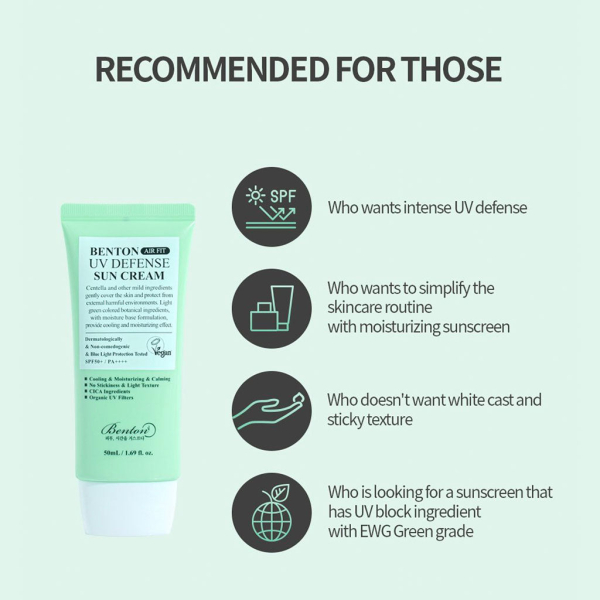 The Benton Air Fit UV Defense Sun Cream is a feather light, no-white cast, creamy sunscreen that hydrates while providing protection from damaging rays. Centella Asiatica and other botanical ingredients soothe, hydrate and calm skin, while panthenol protects your skin barrier. Nothing artificial here, the light green hue of this sunscreen, subtle herbaceous scent and cooling sensation upon application all come from the ingredients themselves.