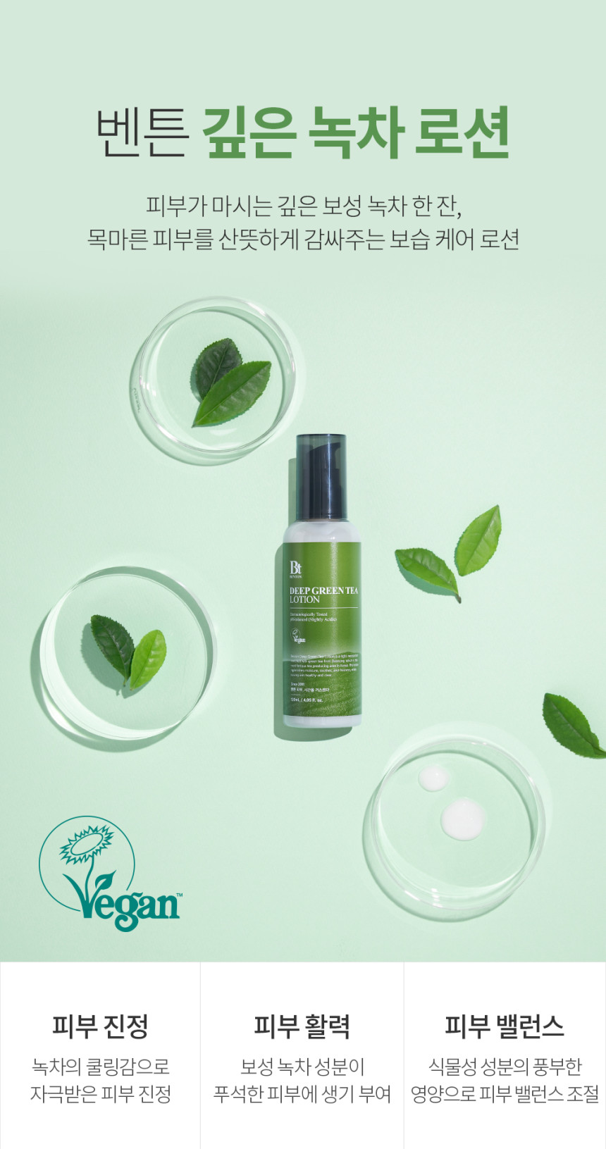 - Application: Utilize Deep Green Tea Lotion to create a hydrating barrier on your skin. In areas lacking oil and moisture, mix 1-2 drops of oil with the lotion to ensure the moisture is effectively sealed in.