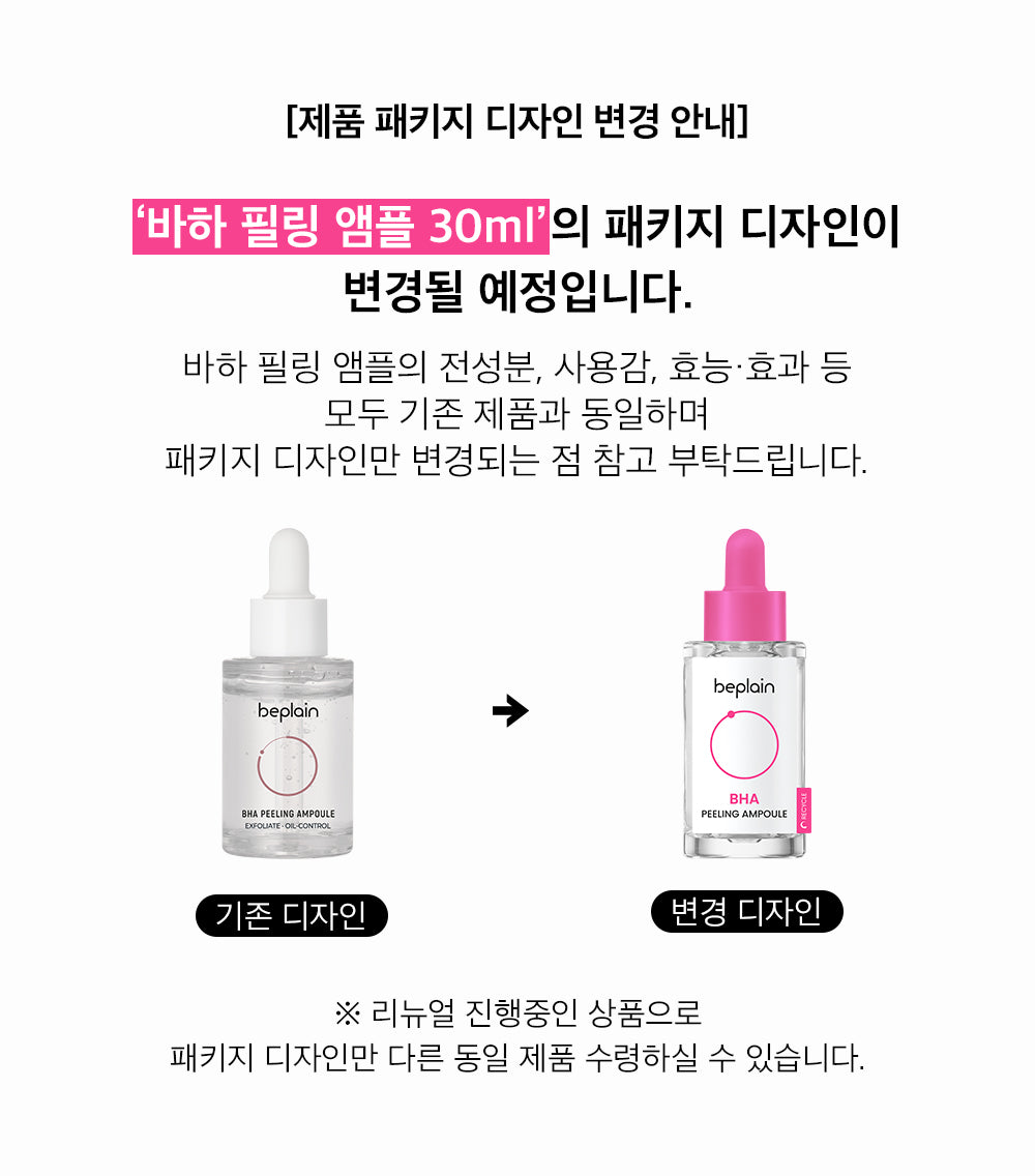 Please note that all ingredients, feeling of use, efficacy, and effects of BHA Peeling Ampoule are all the same as the existing product, and only the package design is changed.