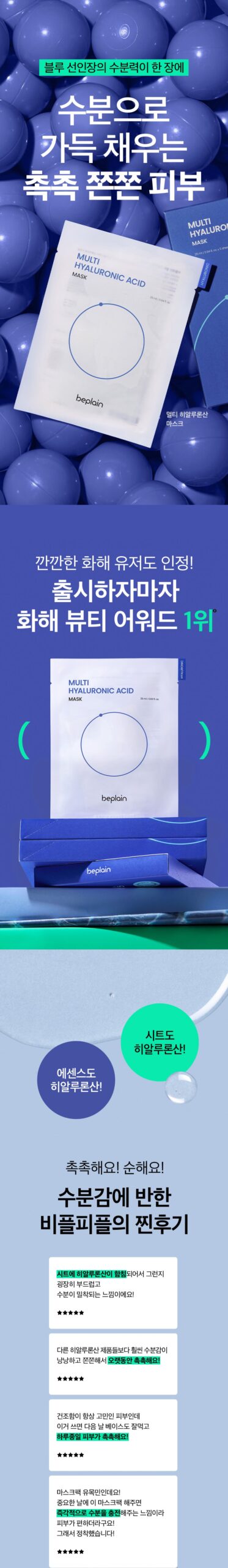 The beplain Multi Hyaluronic Acid Mask has truly transformed my skincare routine. Infused with 8-Fold Hyaluronic Acid, this sheet mask delivers deep moisture that left my skin feeling incredibly soft and plump. I was especially impressed by the inclusion of Blue Cactus, which helps retain moisture so effectively. After using it, my skin looked revitalized and hydrated without any sticky residue. This mask is now a staple in my weekly regimen; I can’t recommend it enough for anyone seeking intense hydration.
