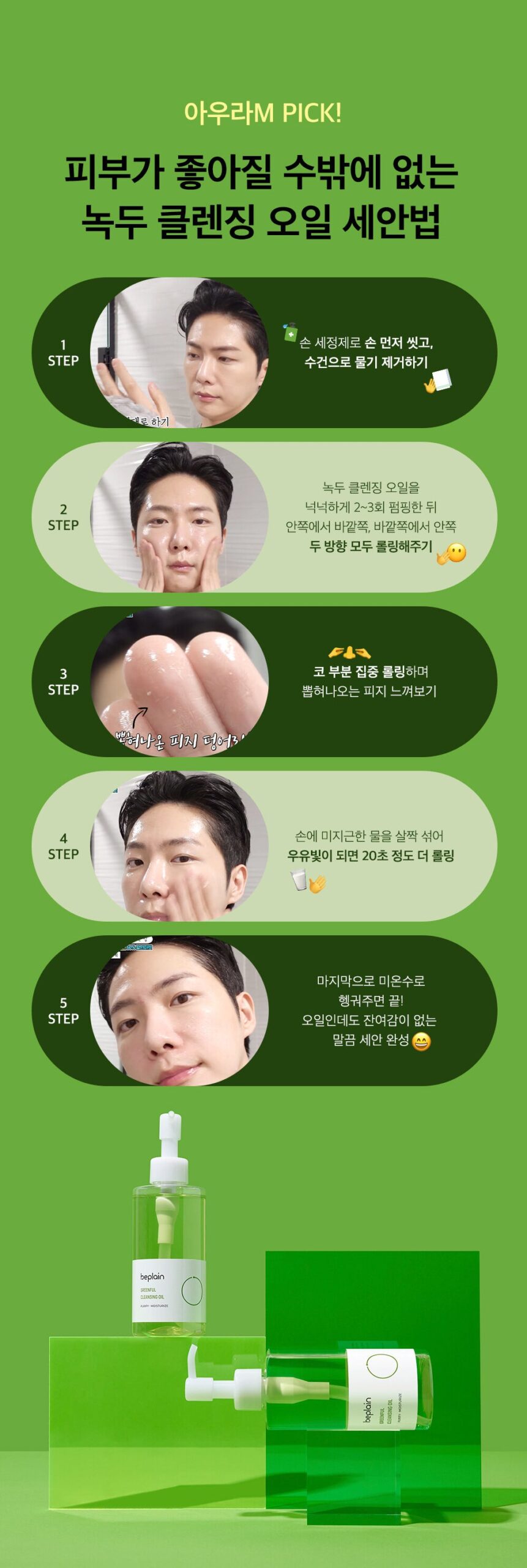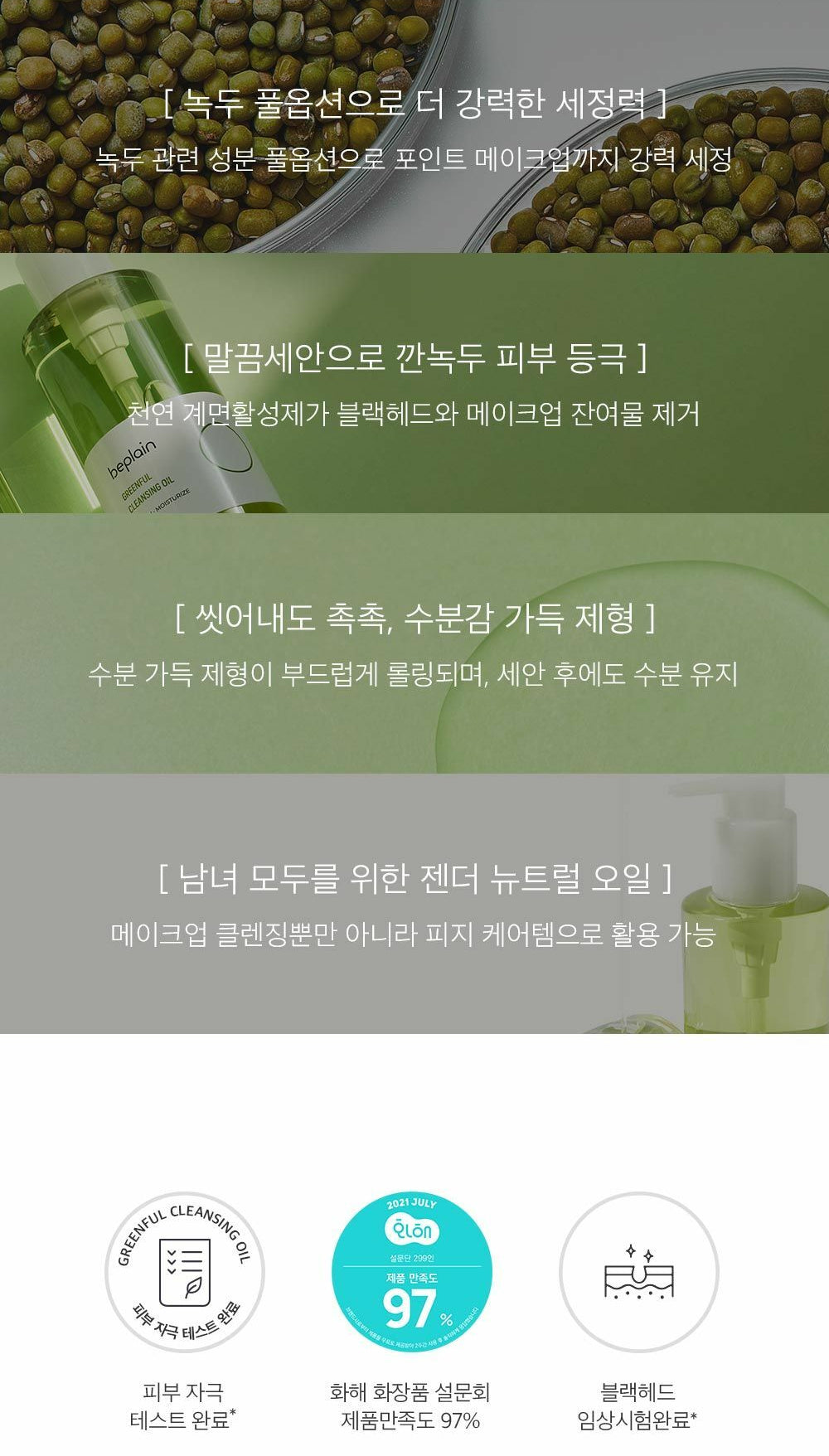 Mung bean cleansing oil minimizes all ingredients and works comfortably on the skin without burden.