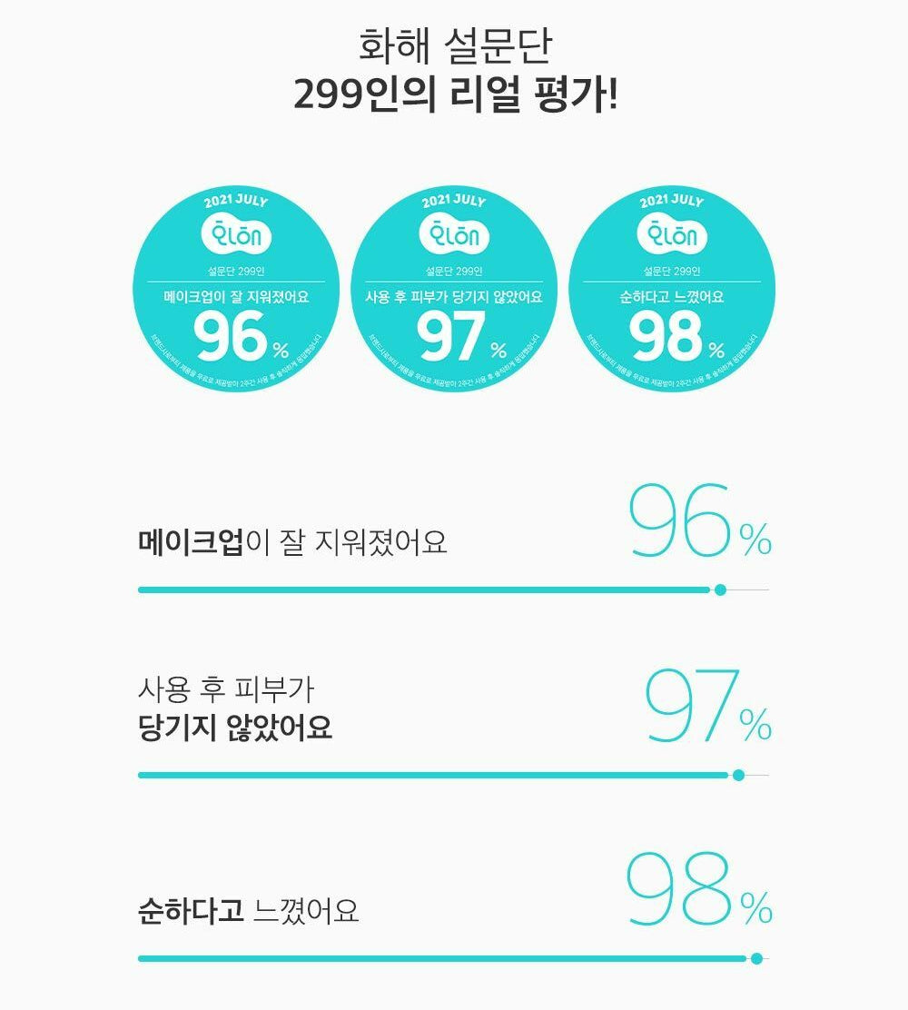 The mung bean extract, as well as the natural surfactant in the mung bean / mung bean seed extract, removes blackheads, sebum, and makeup residues, leaving a refreshing finish without the unique feeling of cleansing oil.