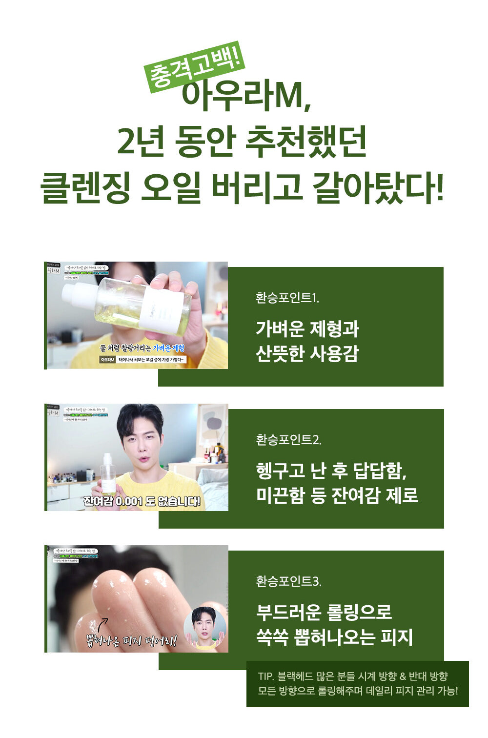 As the mung bean cleansing oil gently melts away excess sebum and blackheads in the process of rolling it onto the skin, it is recommended not only for makeup cleaning but also for sebum/blackhead care.