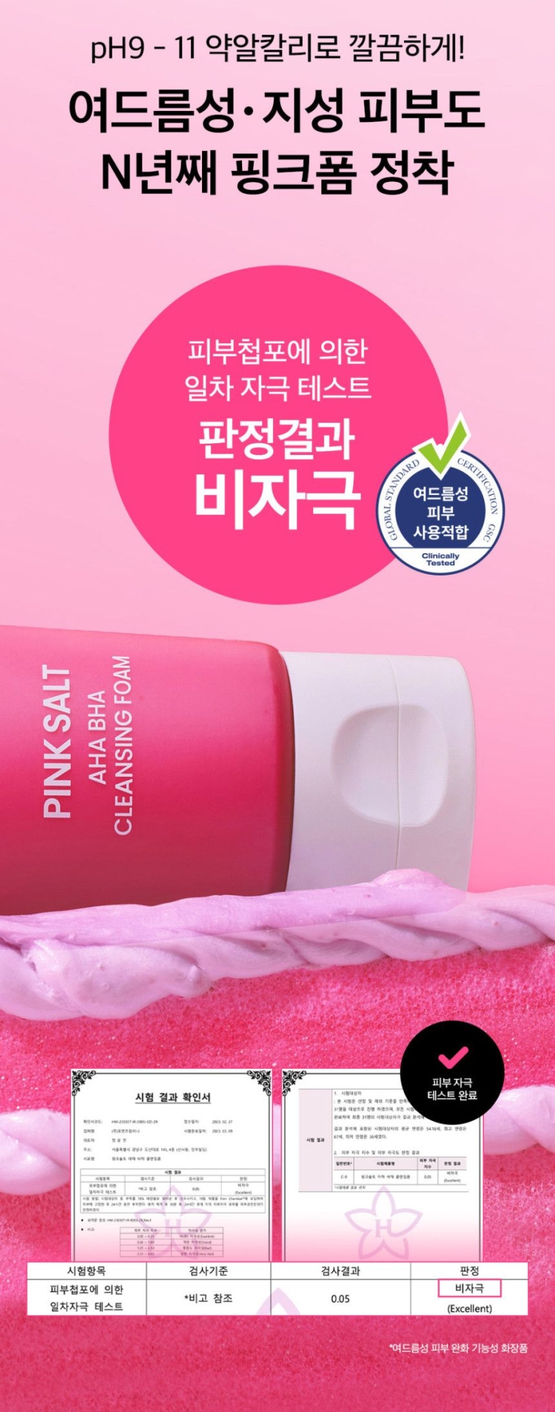 Discover the ultimate cleansing experience with Beplain Pink Salt AHA BHA Cleansing Foam, your solution to refreshed, smooth, and clear skin. Designed to effectively dissolve keratin, sebum, and oil with its unique salt formula, this cleansing foam leaves your skin feeling invigorated and deeply cleansed.