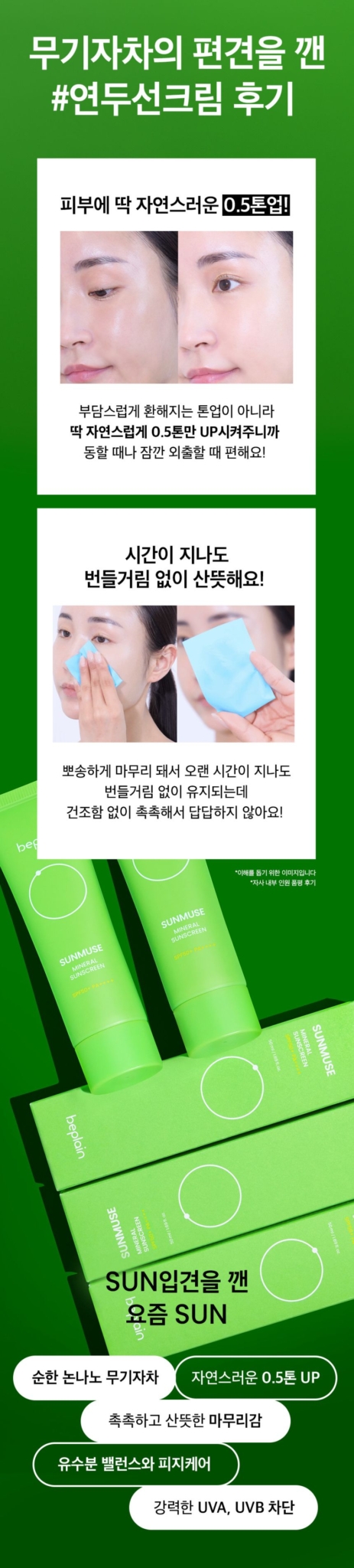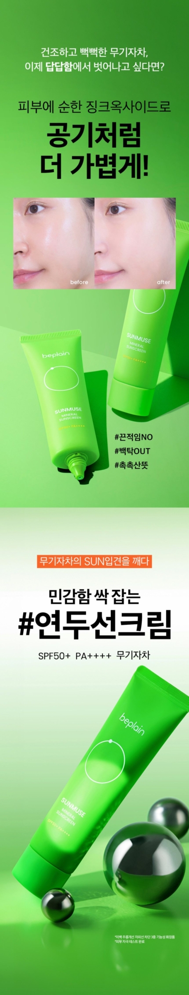 Beplain Sunmuse Mineral Green Sunscreen SPF50+ PA++++
