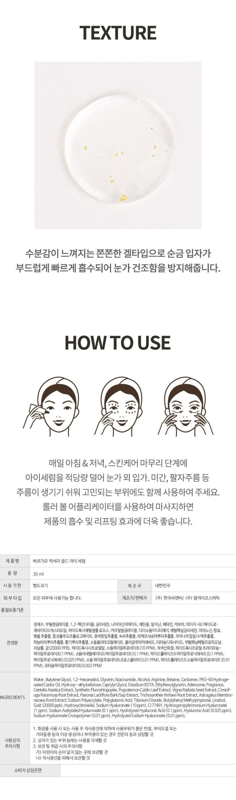 - Apply Morning & Night: After your skincare routine, at the final step, apply the eye serum to areas prone to wrinkles, such as around the eyes, between the eyebrows, and smile lines.
