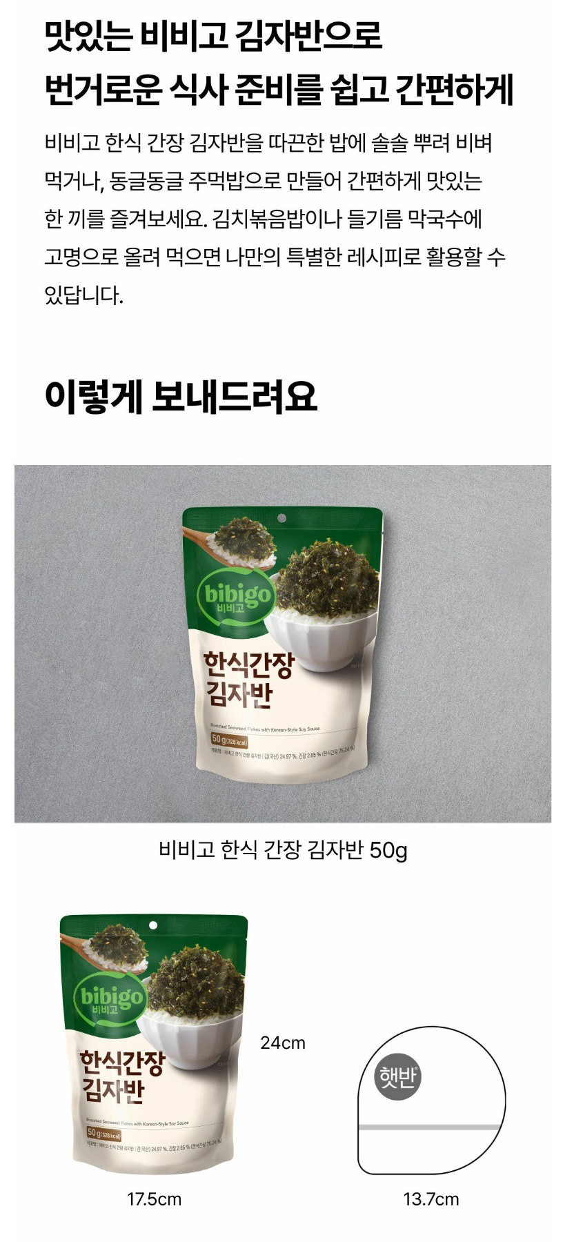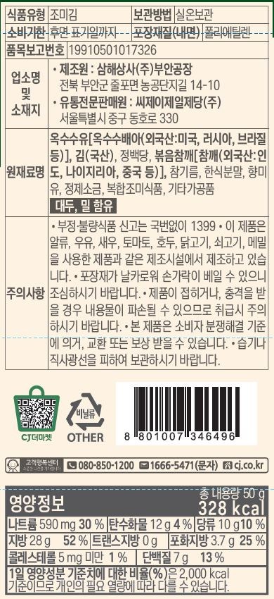 Made with 100% Korean stone seaweed, seasoned with soy sauce and sesame seeds, and carefully roasted and stir-fried in a hot pan at over 200°C. The result is a crispy, flavorful topping that makes meals more delicious.