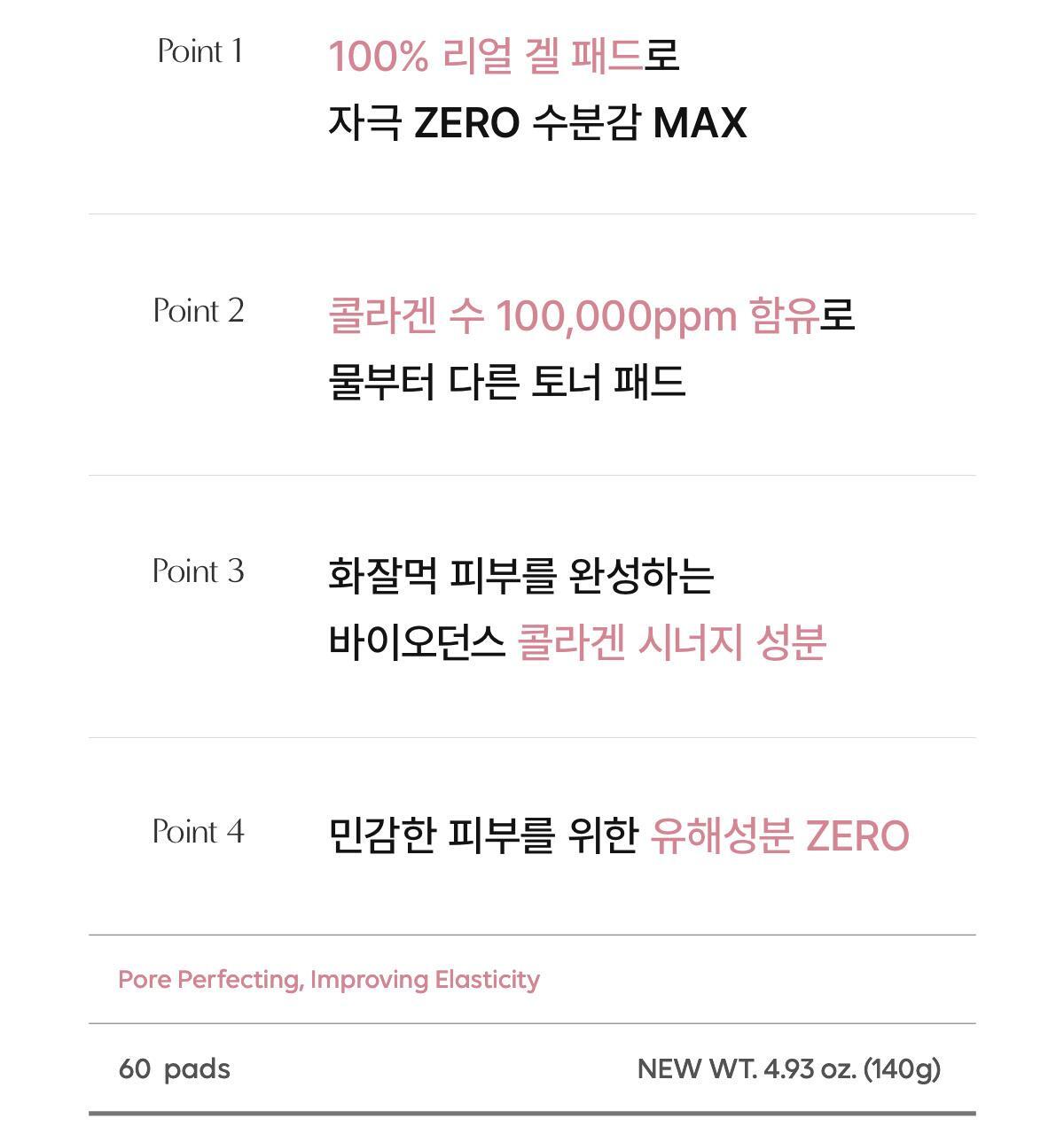With 100,000 ppm of ultra-low molecular collagen, this toner pad goes beyond basic hydration. Its small collagen molecules penetrate deep into the pores, delivering elastic energy that tightens and revitalizes your skin.