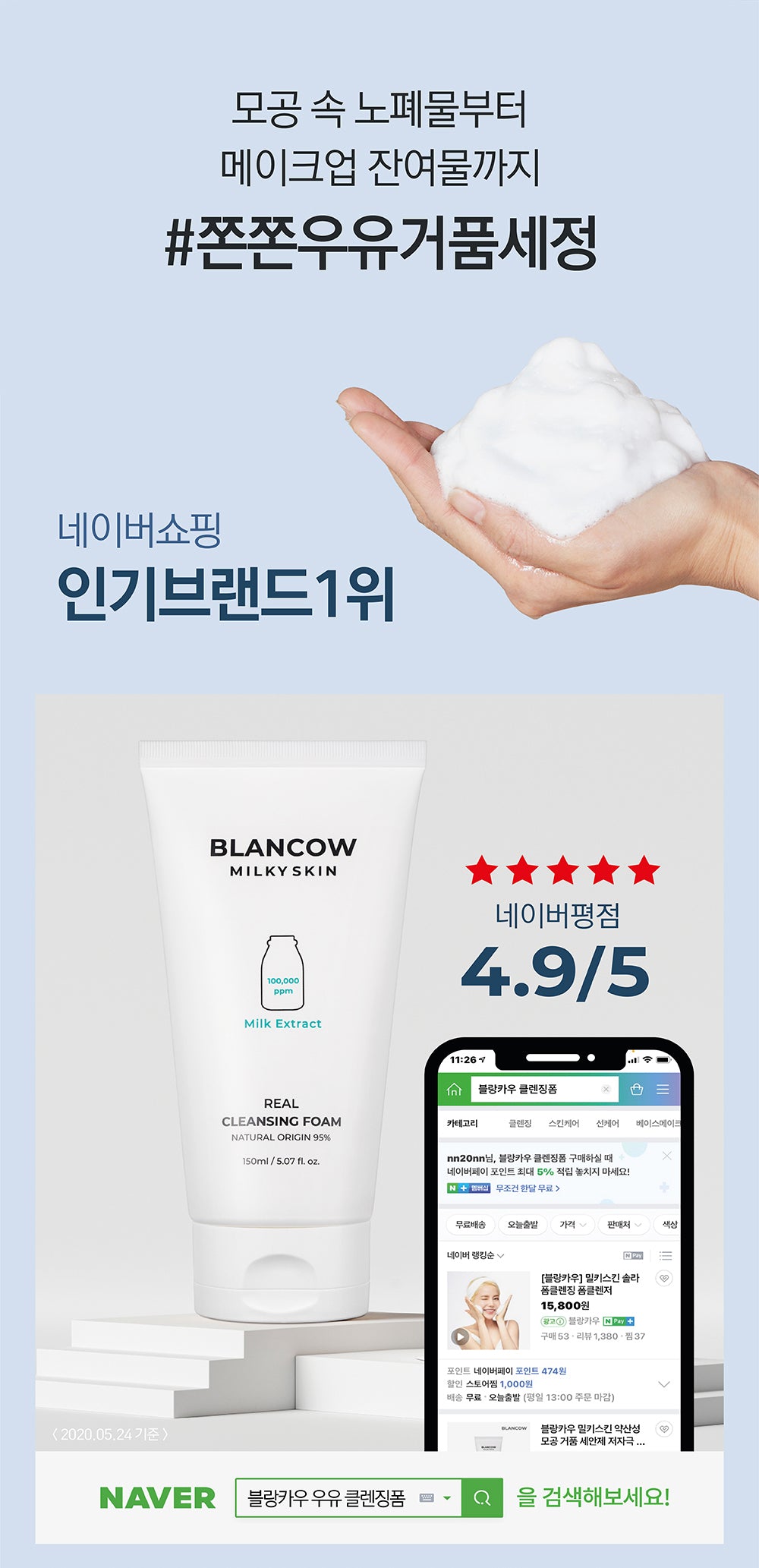 Reveal your skin’s natural clarity with BLANCOW Milky Skin Real Cleansing Foam – your daily essential for healthy, glowing skin.