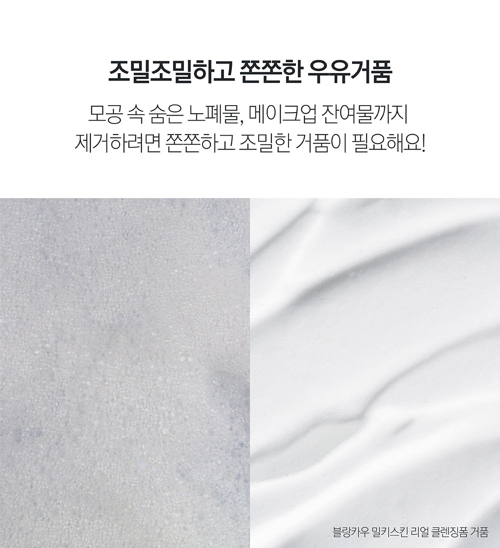 Experience the power of BLANCOW Milky Skin Real Cleansing Foam, formulated to thoroughly remove impurities, makeup residue, and even fine dust from deep within your pores. Its rich, dense micro-milk foam ensures every inch of your skin is clean, refreshed, and nourished.