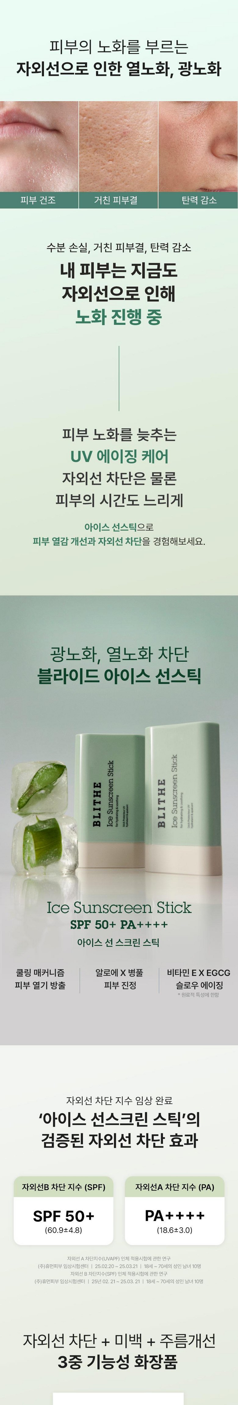 Even on the hottest summer days, apply the BLITHE Ice Sunscreen Stick for an instant burst of refreshing coolness. Its stabilized moisture formula adheres closely to the skin, providing immediate temperature reduction without any stickiness or discomfort.