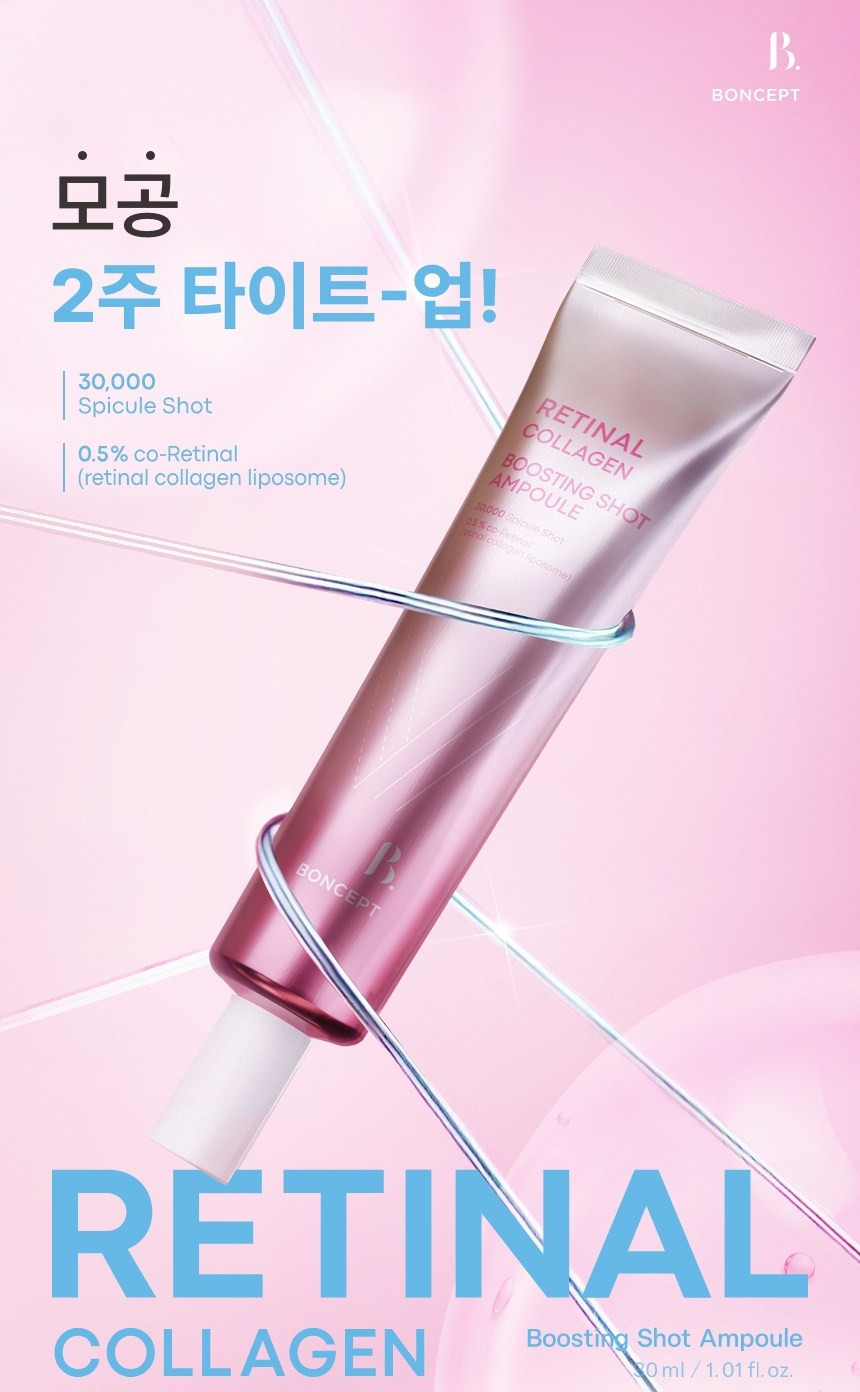 Experience the power of Retinal-Collagen technology with this advanced anti-aging ampoule from BONCEPT. This dual-functional cosmetic product is designed for wrinkle improvement and brightening.