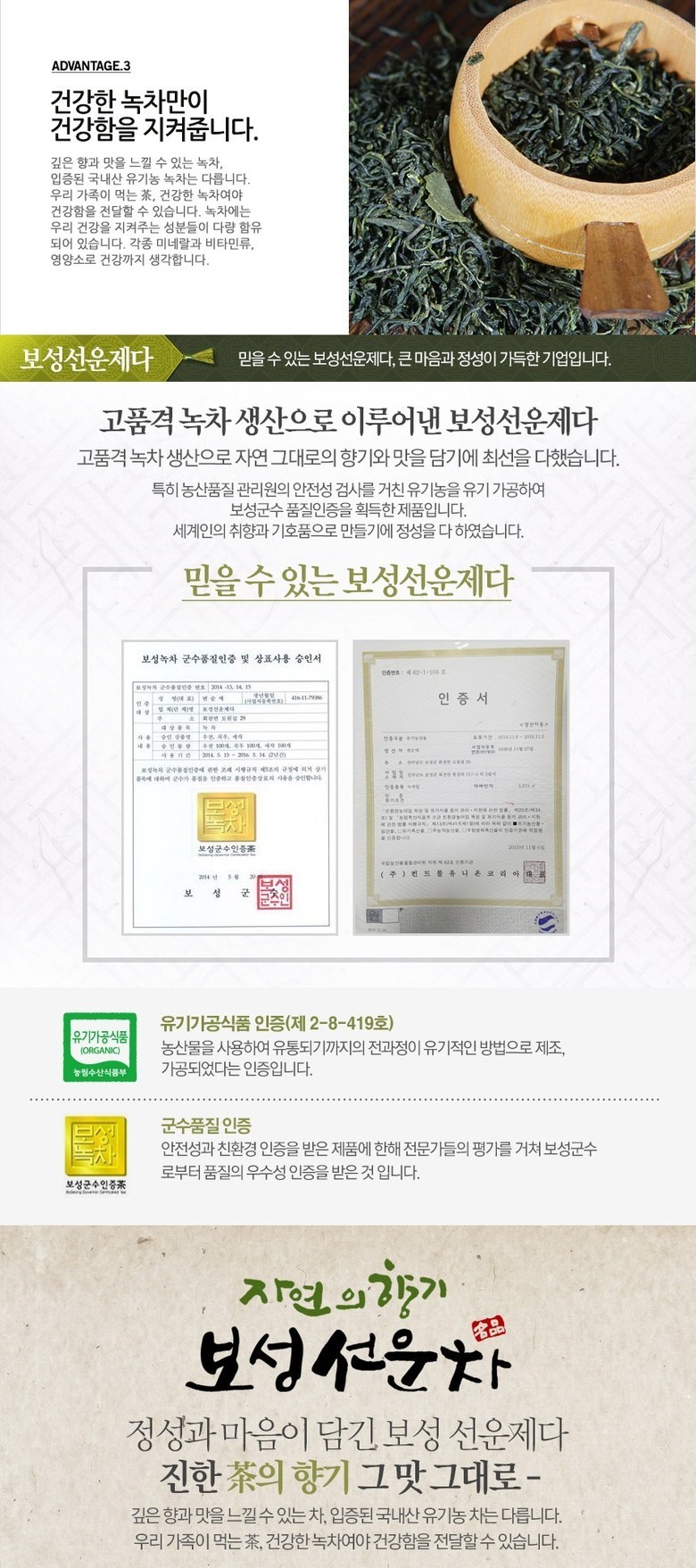 - Certified organic tea from Boseong, Korea
