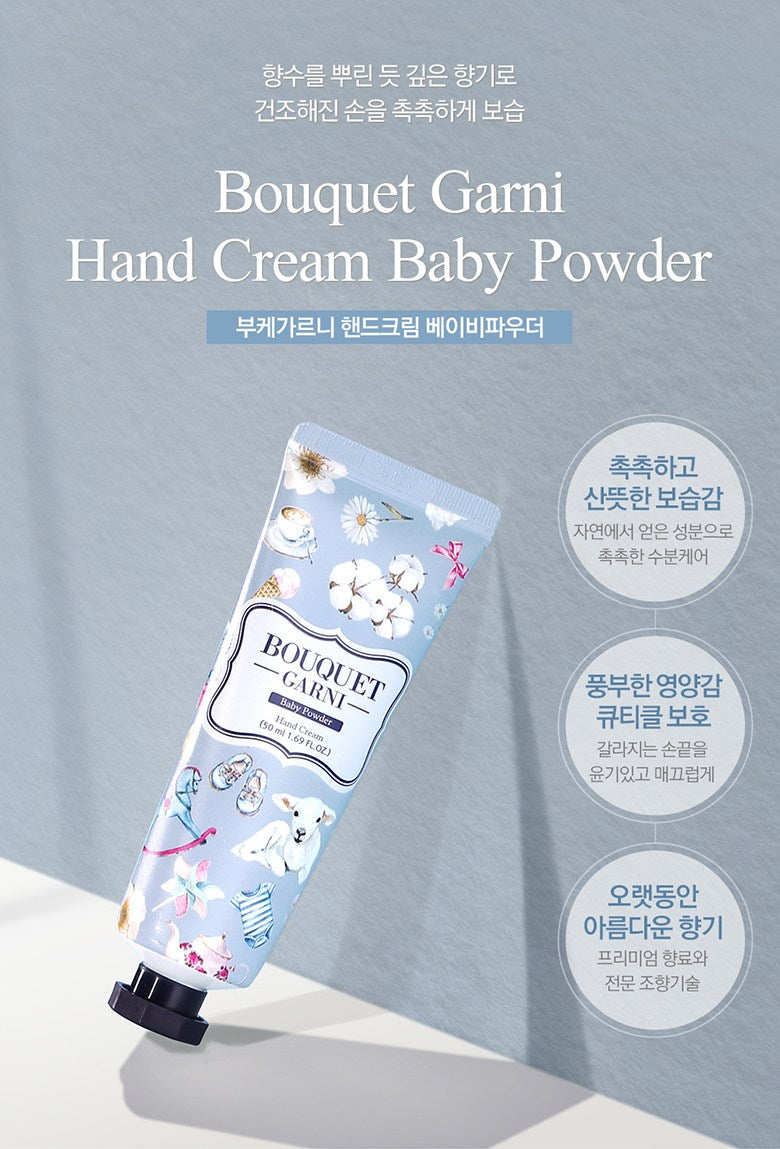 I recently started using the Bouquet Garni Hand Cream with a baby powder scent and have been pleasantly surprised by its effects. The long-lasting moist feeling is particularly impressive; my hands feel hydrated throughout the day without needing constant reapplication. Additionally, it offers great cuticle care—my nails look healthier than ever! The soothing comfort it provides after a long day at work has made this hand cream an essential part of my routine. I also appreciate how well the fragrance lingers without being overwhelming.