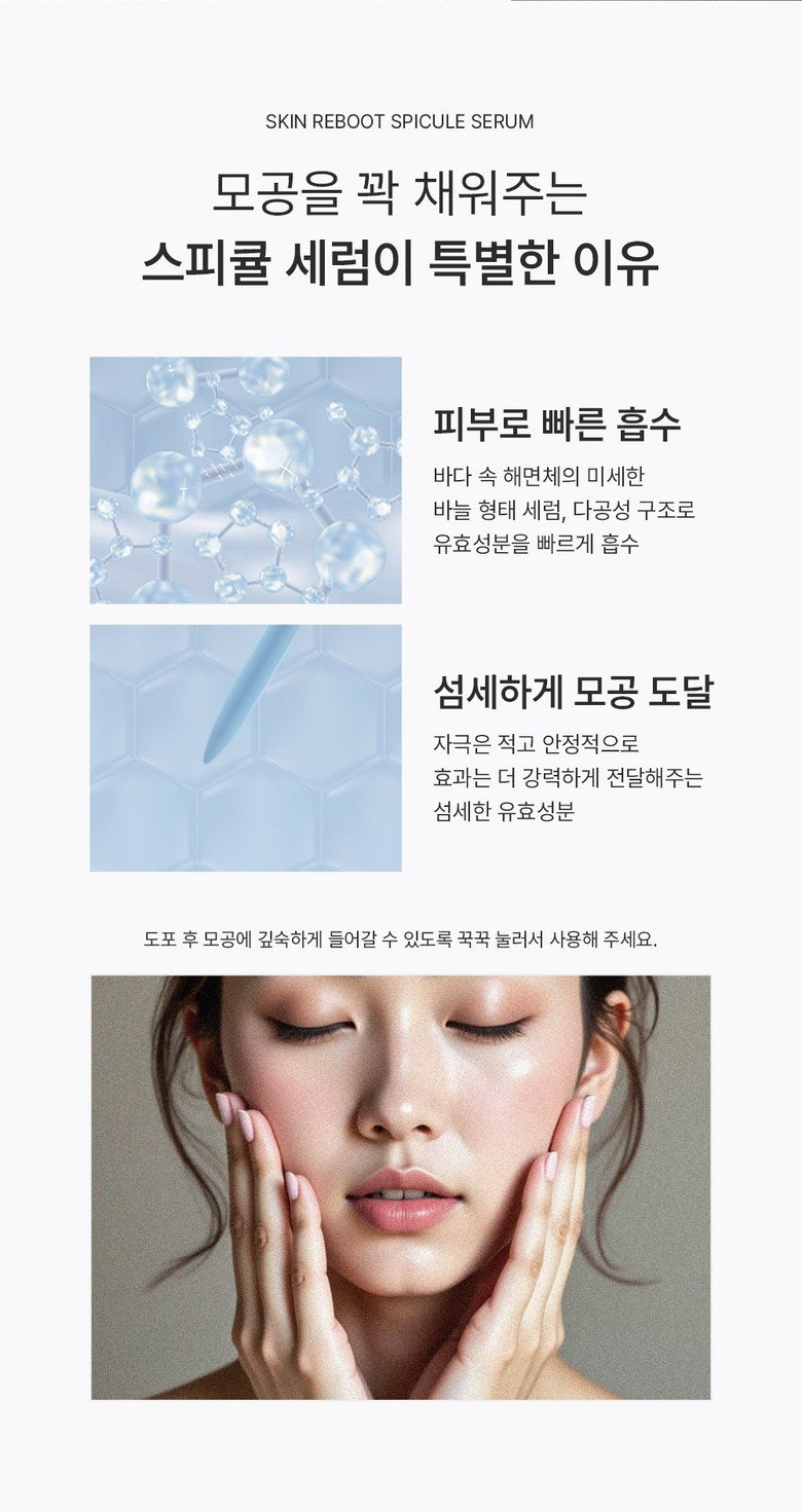 Bravity Skin Reboot Spicule Serum is a revolutionary formula designed to tighten pores, brighten skin, and improve elasticity by delivering active ingredients deep into the skin.