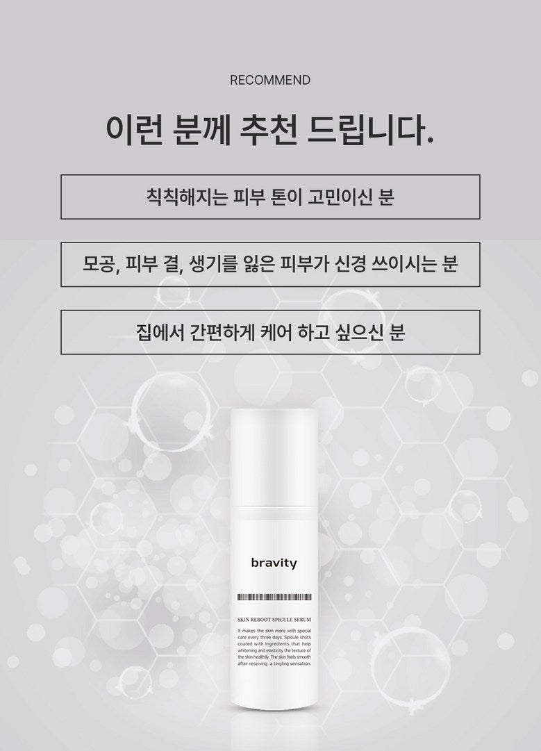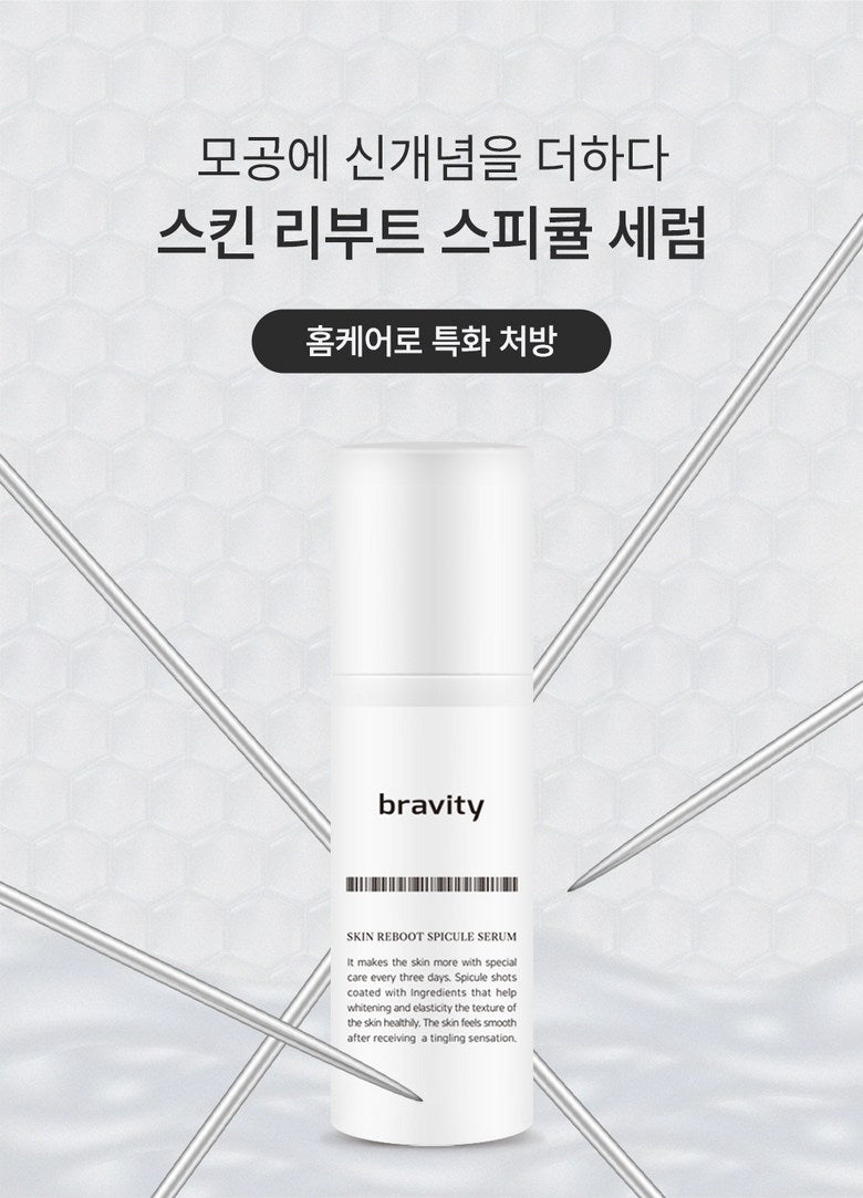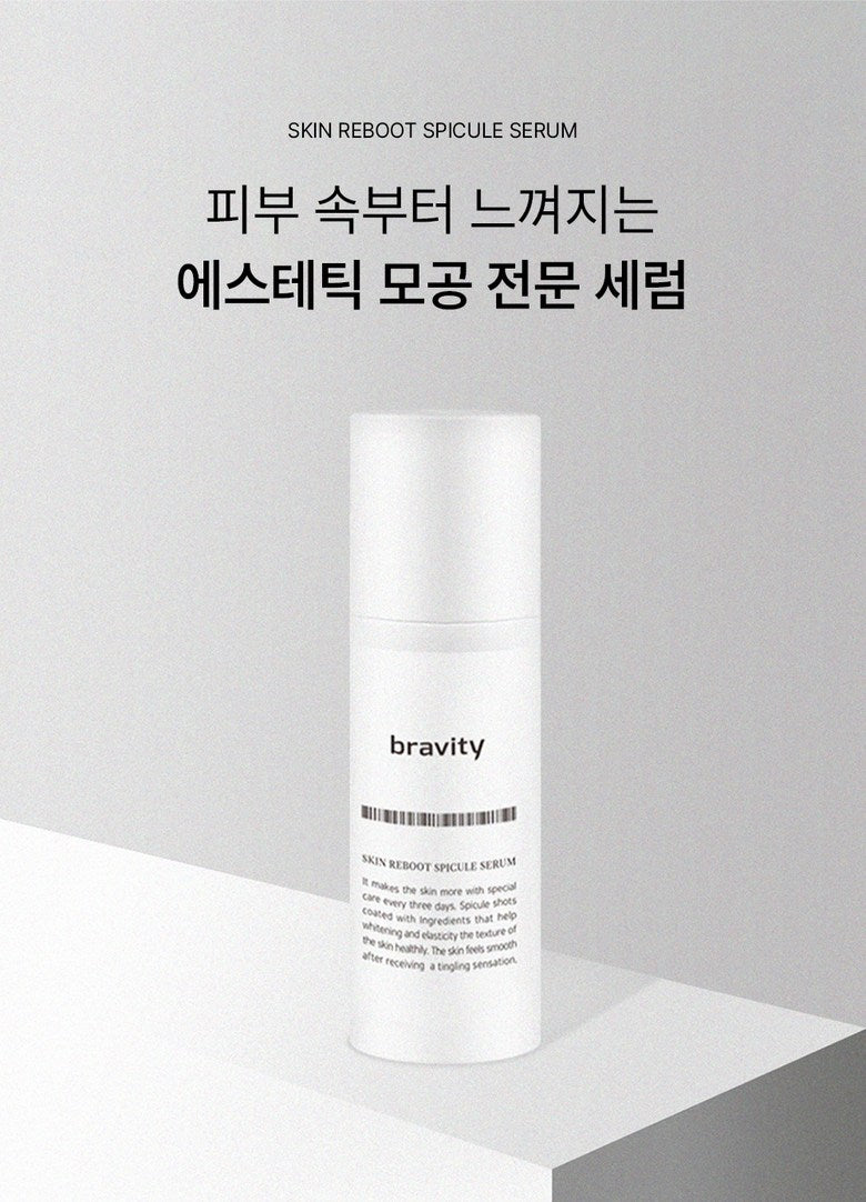 Bravity Skin Reboot Spicule Serum is a revolutionary formula designed to tighten pores, brighten skin, and improve elasticity by delivering active ingredients deep into the skin.