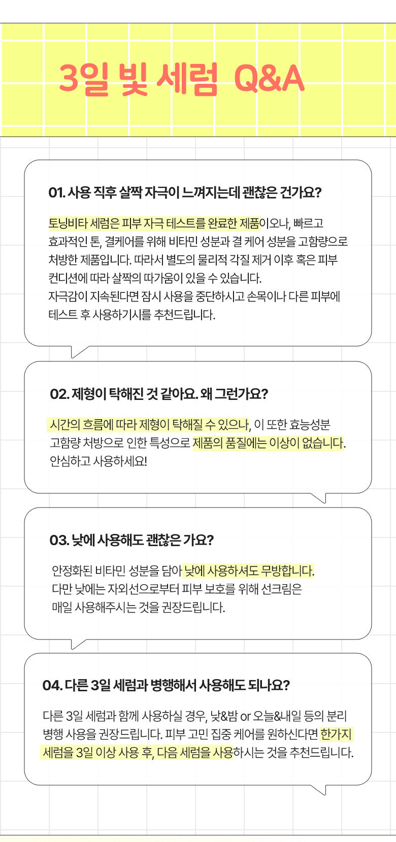 - Day 3 – Moisture Care: Carrot water and panthenol infuse the skin with moisture for a smooth feel.
