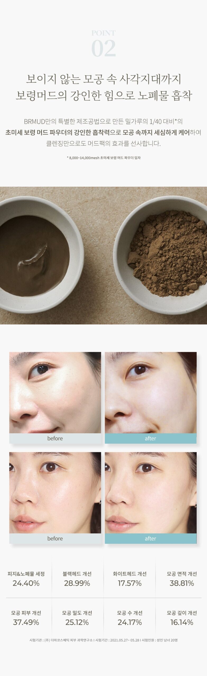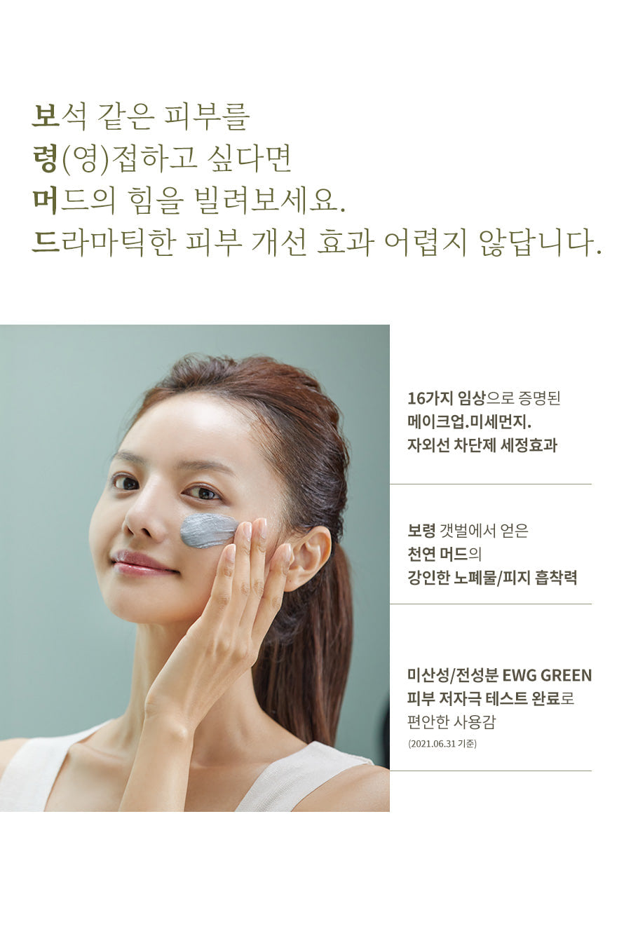The natural mud obtained from Boryeong tidal flats has strong waste and sebum adsorbing power.