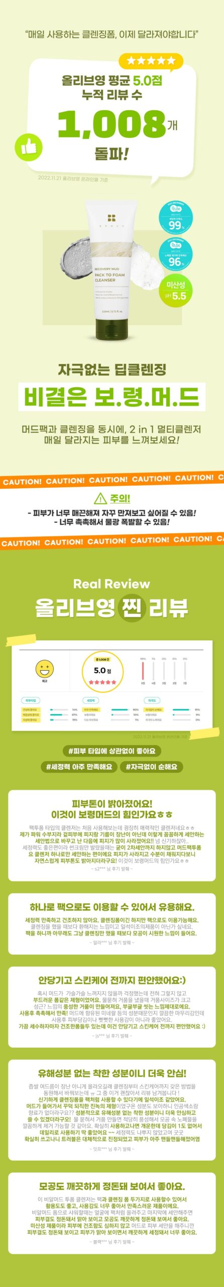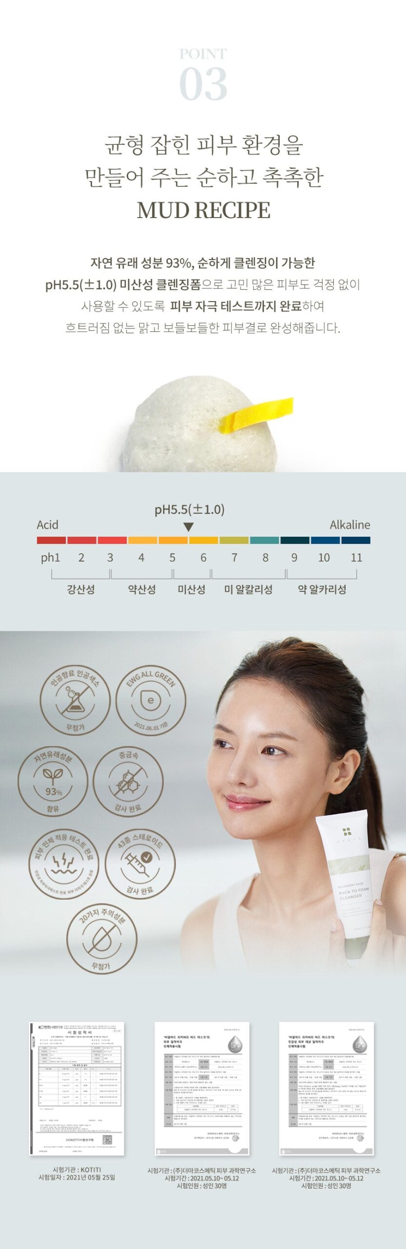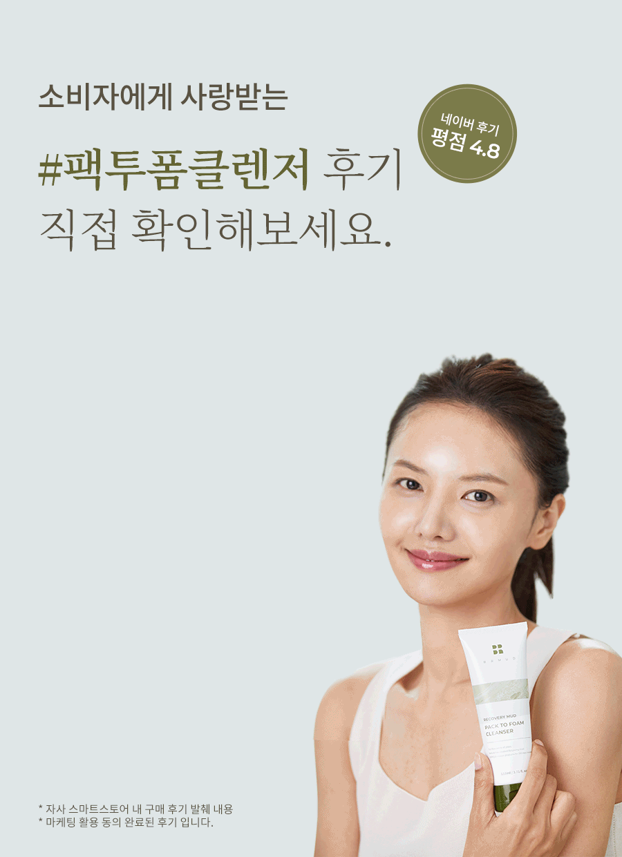 93% of natural ingredients, pH 5.5 (±1.0) slightly acidic cleansing foam that can be gently cleansed, and completed a skin irritation test so that even troubled skin can be used without worry, completing a clear and soft skin texture without disturbing it.