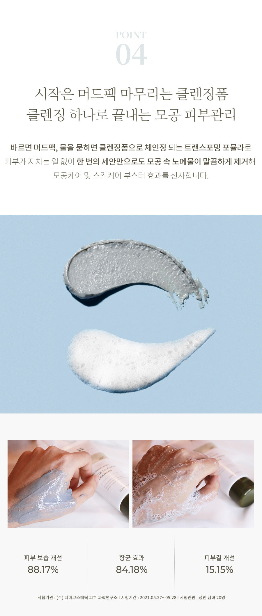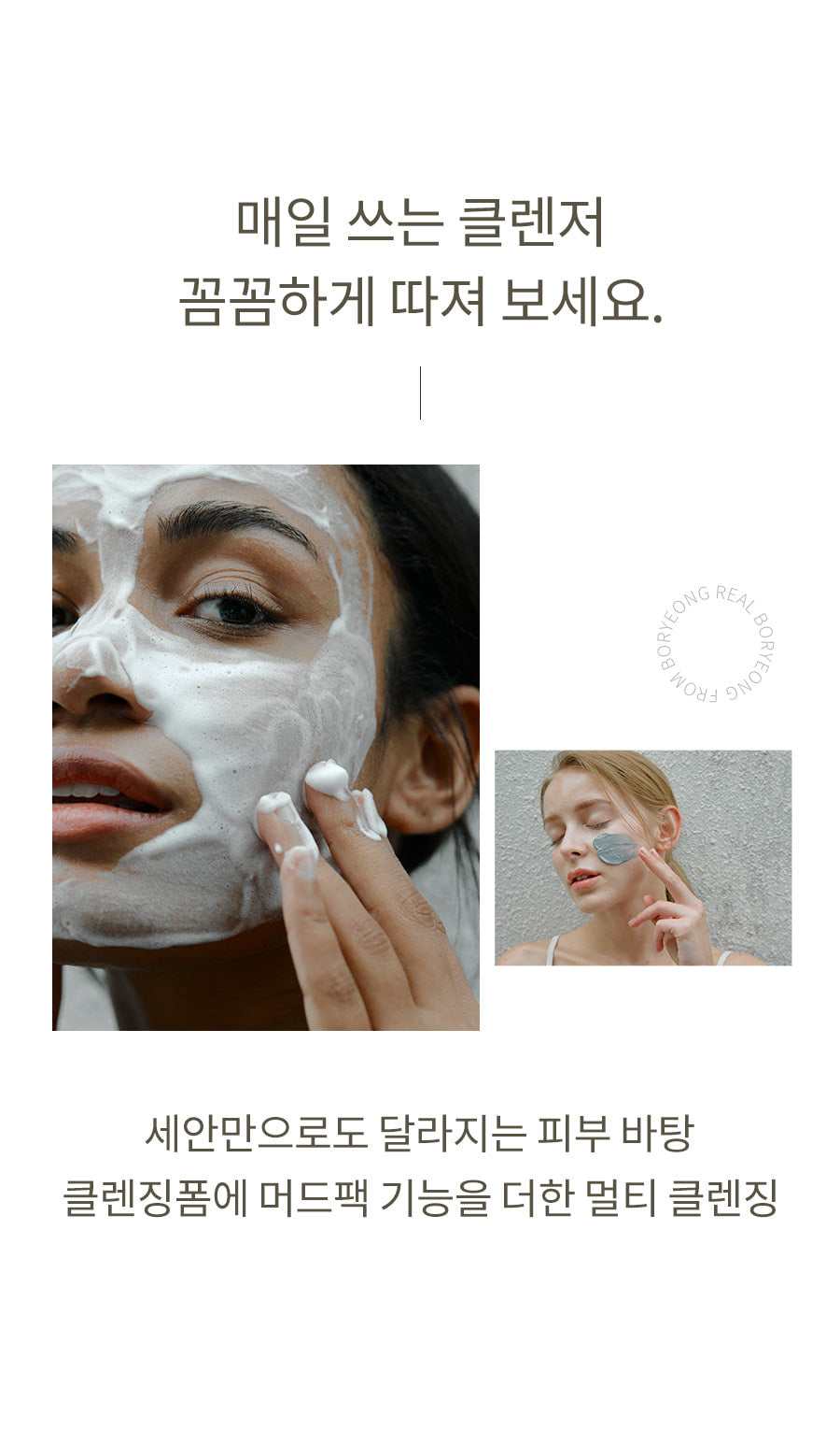 The slightly acidic foam containing ultra-fine Boryeong mud powder deeply cleanses various harmful substances and invisible wastes in the pores, completing a clear and clean skin base.