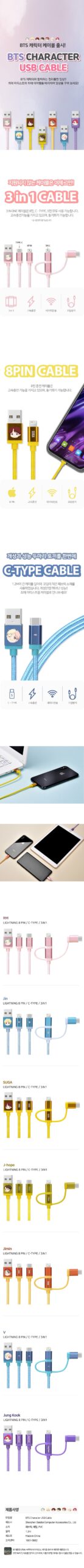Express your love for BTS while enjoying hassle-free charging with this stylish and practical BTS Character USB Cable 3-in-1! 💜