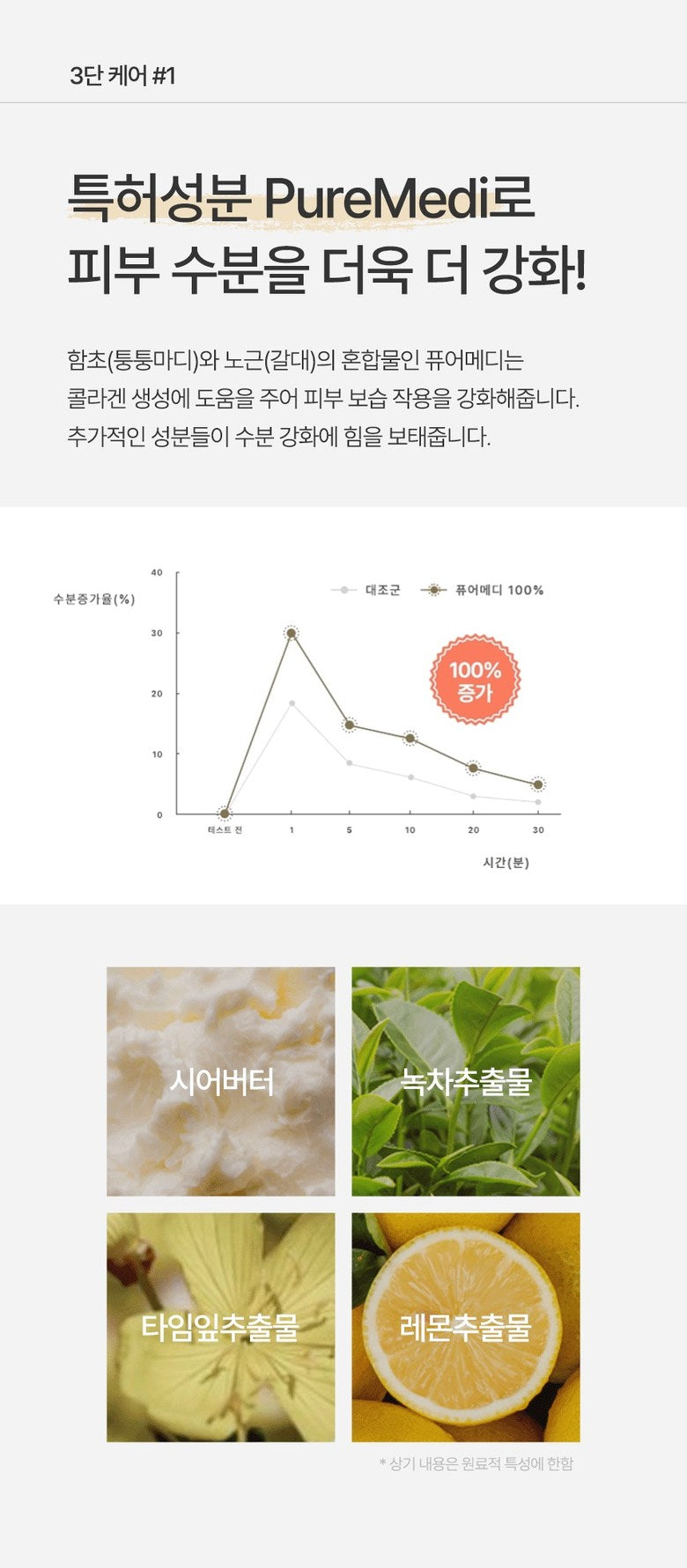 You can achieve more moisturizing and proper care with the three stages of moisture, barrier, and soothing care.