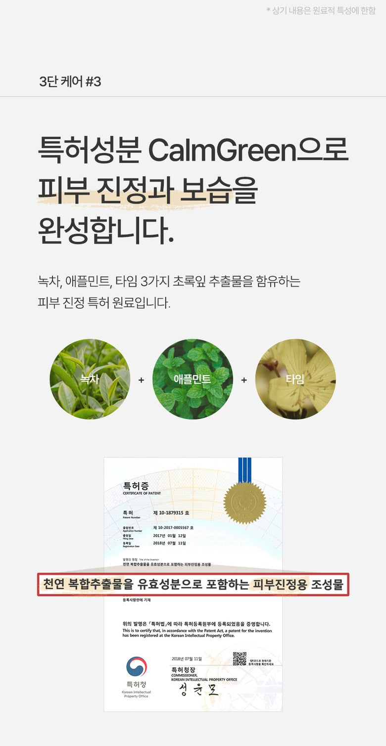 * Complete skin soothing and moisturizing with patented ingredient CalmGreen.