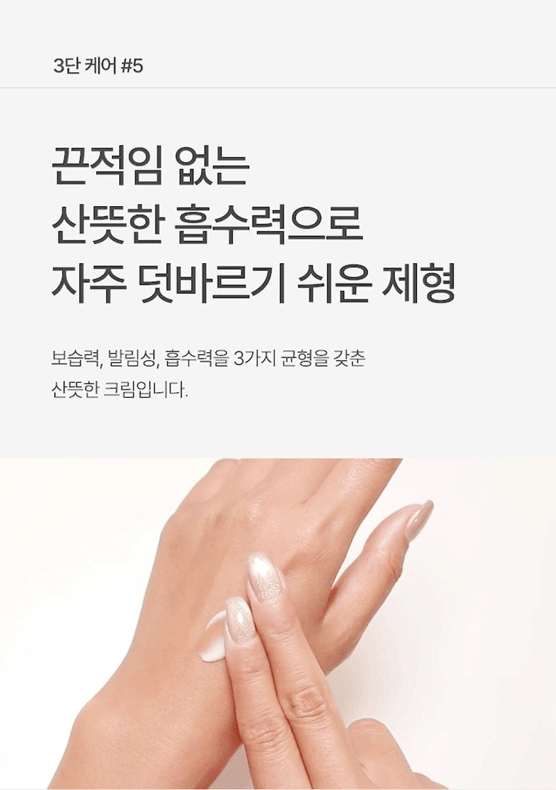 You can achieve more moisturizing and proper care with the three stages of moisture, barrier, and soothing care.